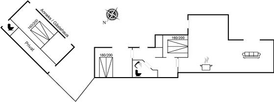 Die Schlafplätze verteilen sich auf 3 Schlafräume. 6 Schlafplätze in Doppelbetten.2 von diesen Schlafplätzen befinden sich im Gästehaus. Ferner steht ein Kinderbett zur Verfügung.