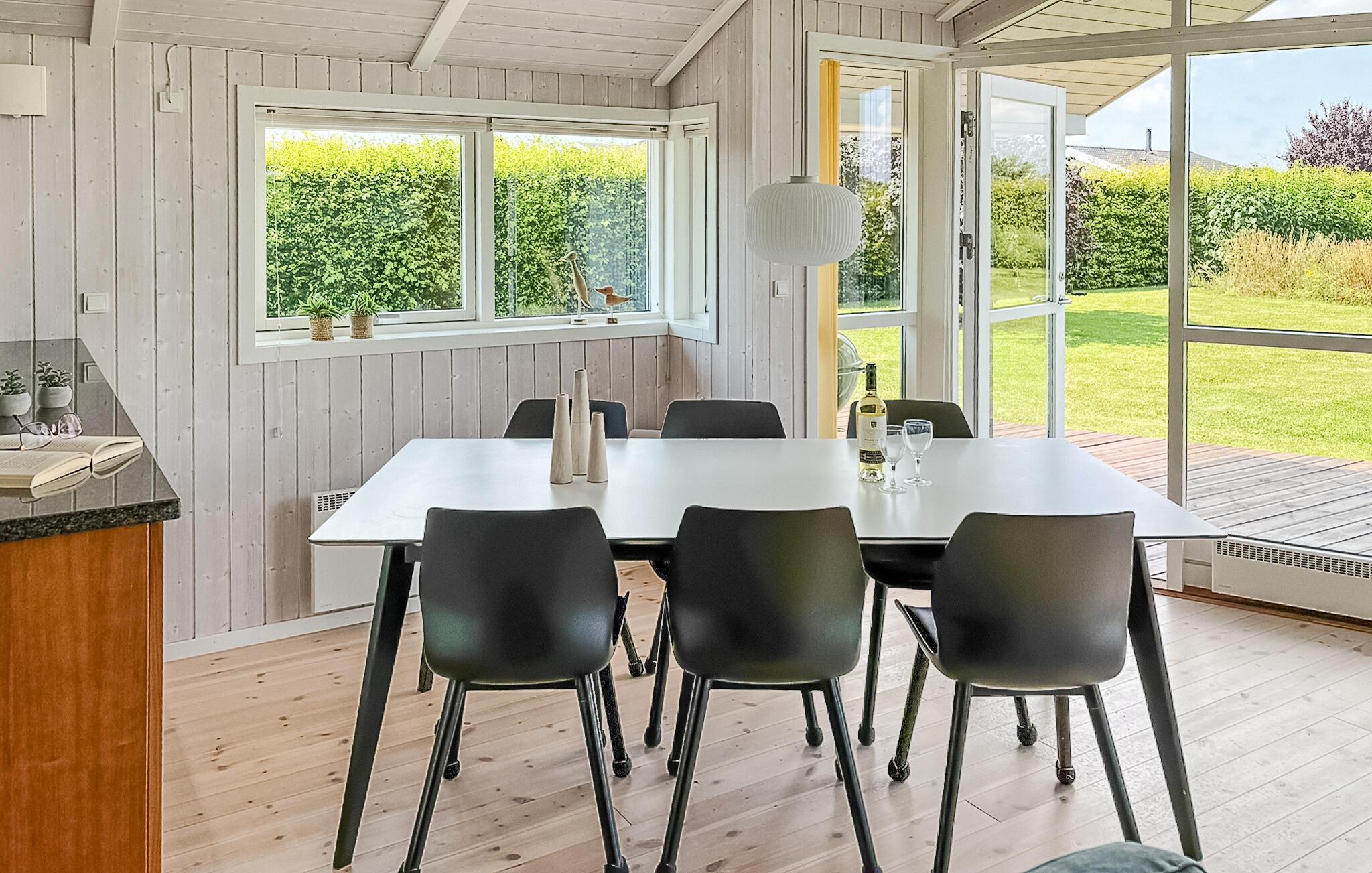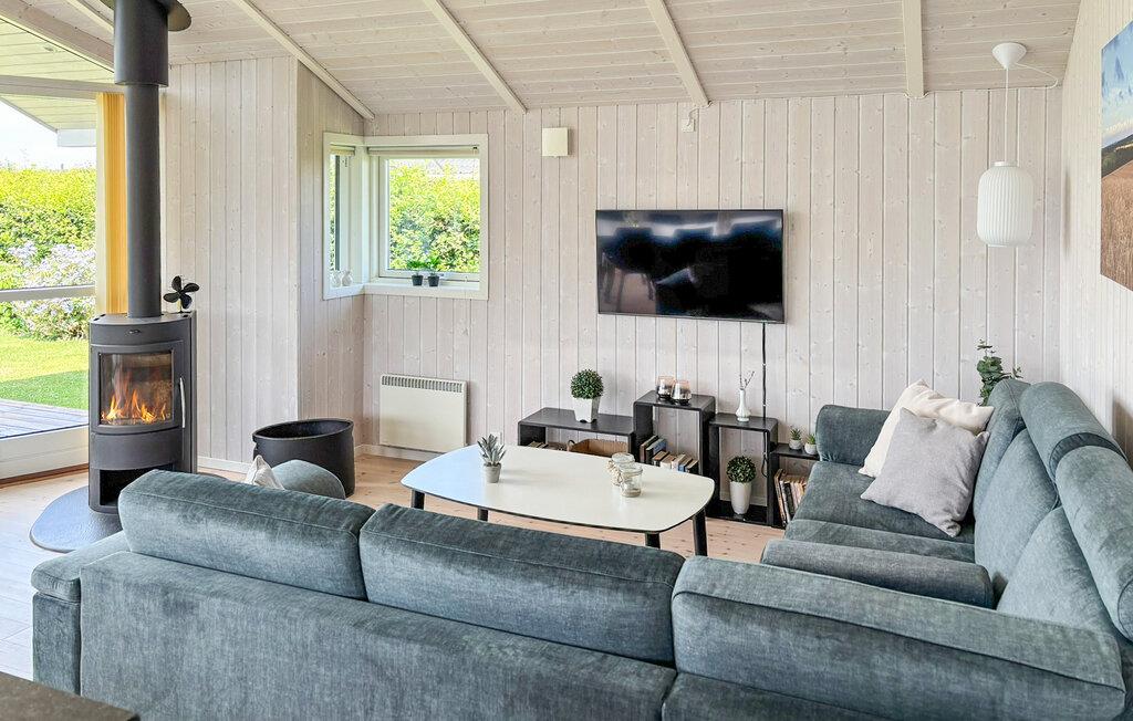 Dieses elegante Ferienhaus in Flovt bietet eine erholsame Auszeit nahe dem Meer mit großzügiger Terrasse und Kaminofen.