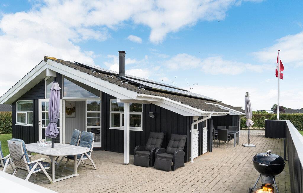 Entspannen Sie in diesem stilvollen Ferienhaus nahe dem Strand von Flovt mit Sauna, Whirlpool und großem Garten.