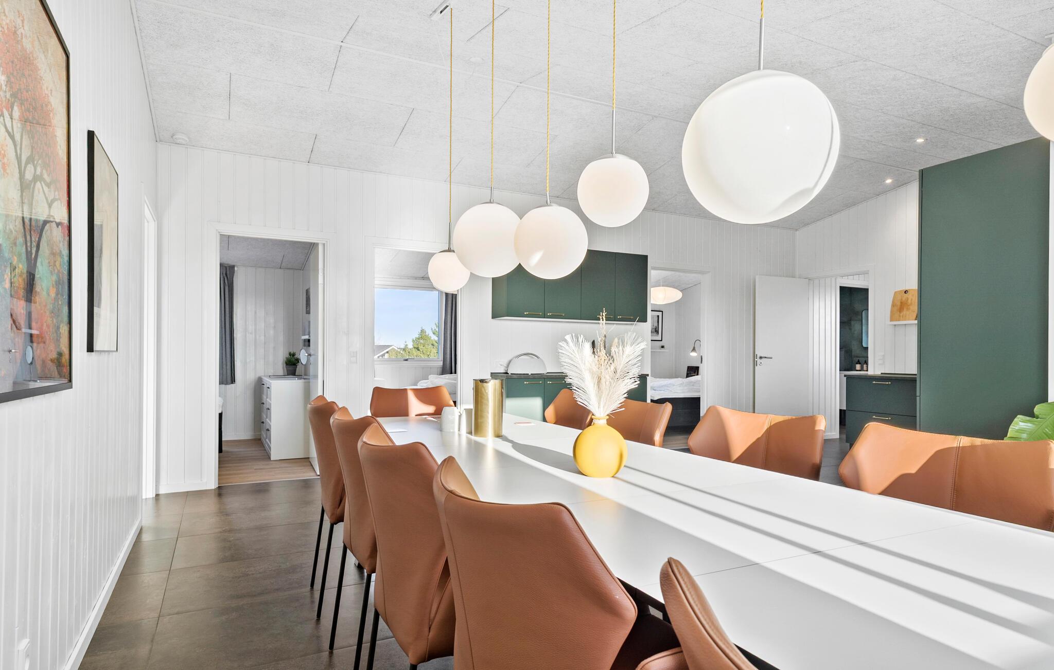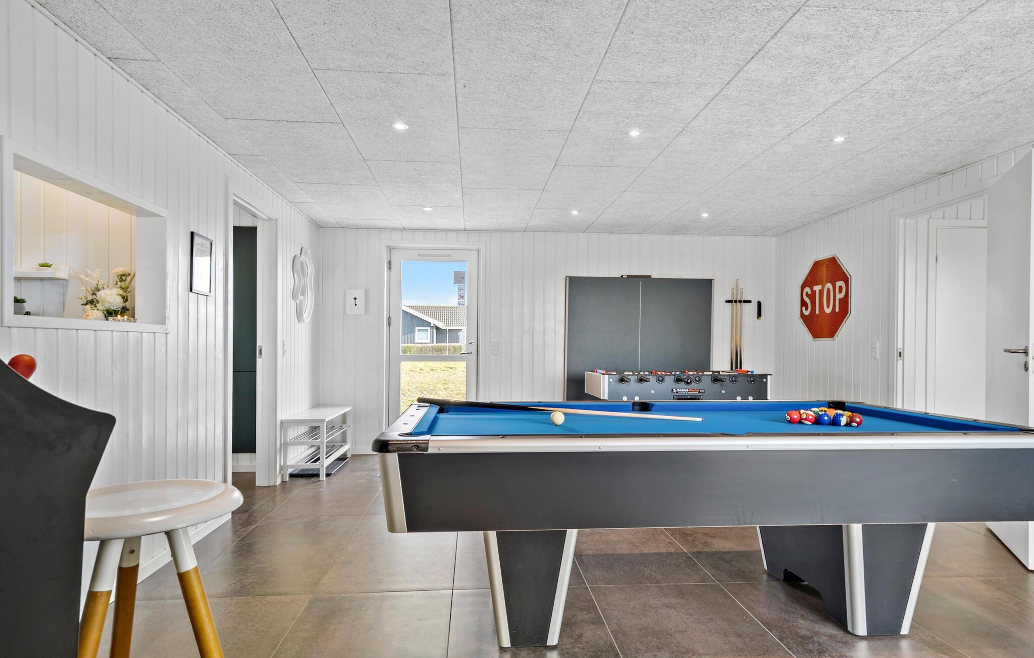 Dieses geräumige Ferienhaus mit Platz für zwei Familien oder eine größere Reisegruppe ist der ideale Rückzugsort, um dem Alltag zu entfliehen und die frische Luft in Küstennähe zu genießen. In der großzügigen, modernen Küche können Sie leckere Mahlzeiten zubereiten und diese am eleganten Esstisch servieren. Entspannen Sie auf dem Sofa nach allen Regeln der Kunst. Auch für Unterhaltung ist hier gesorgt. Veranstalten Sie im Aktivitätsraum Urlaubsturniere im Tischfußball oder Billard und zocken Sie gemeinsam an der Spielkonsole.