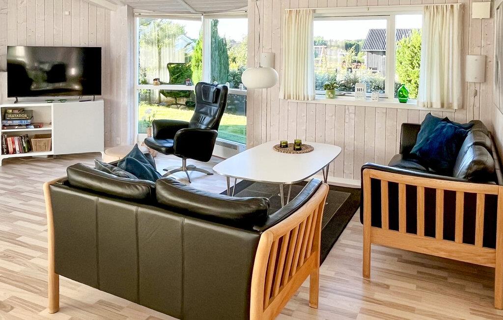 Dieses komfortable Ferienhaus begrüßt Sie mit einem hellen, stilvollen Wohnbereich, in dem große Fensterfronten einen schönen Blick ins Grüne eröffnen. Die geräumige Küche verleitet zu kulinarischen Höchstleistungen – freuen Sie sich auf köstliche Mahlzeiten im behaglichen Essbereich. Gönnen Sie sich wohlige Momente in der Sauna, streamen Sie Ihre Lieblingsserie oder vertiefen Sie sich beim Lesen am Kamin in eine gute Lektüre.