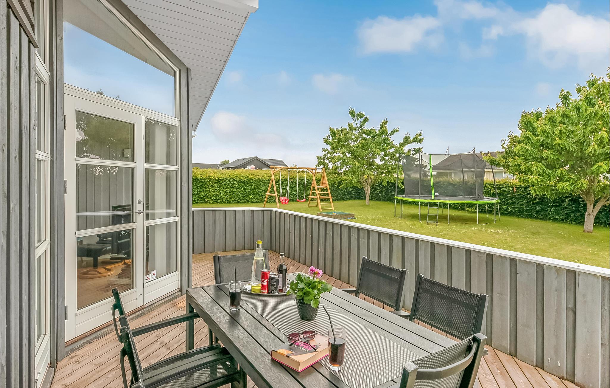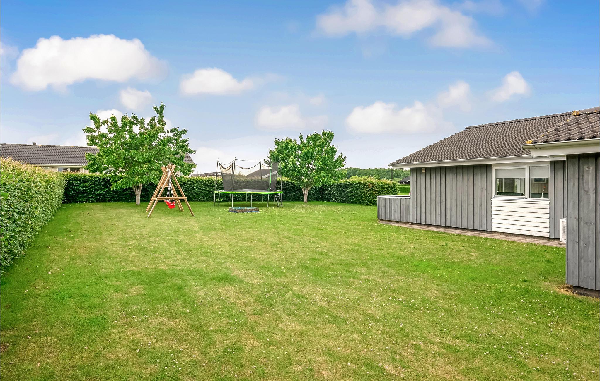 Modernes, familienfreundliches Ferienhaus nahe Flovt Strand mit viel Platz, großem Garten und kinderfreundlicher Umgebung.
