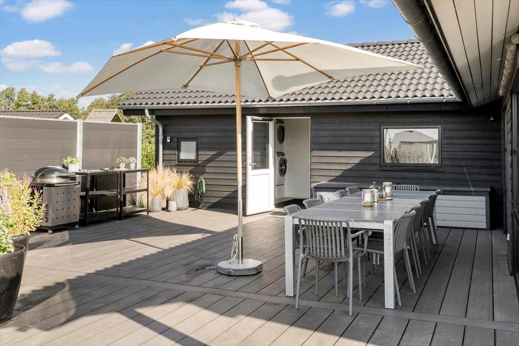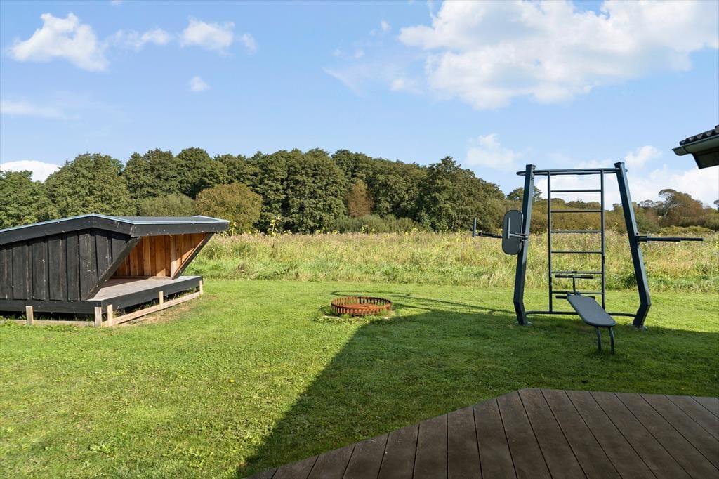 Draußen erstreckt sich der Garten wie ein schöner Spielplatz, wo die Kinder spielen und erkunden können, Stockbrot am Lagerfeuer zubereiten, während die Erwachsenen mit einem Buch entspannen oder einen Drink unter freiem Himmel oder im Shelter genießen können. Die exklusive und geschützte Terrasse ist perfekt für Aufenthalte, Sonnenbaden oder zum gemeinsamen Grillen für ein unvergessliches Abendessen im Freien. Es ist schwer, sich nicht in die schöne Natur zu verlieben, die dich umgibt und ideal für lange Spaziergänge oder Radtouren auf den nahegelegenen Wegen ist. Du wirst schnell entdecken, dass es viele Möglichkeiten gibt, wunderbare Erinnerungen in diesem traumhaften Ferienhaus zu schaffen.