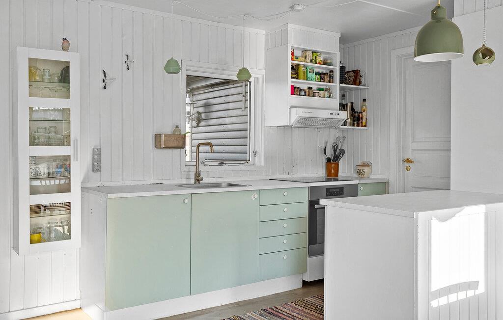 Gönnen Sie sich eine Auszeit in diesem charmanten Ferienhaus und genießen Sie entspannte Tage am Meer. Die ruhige Lage, das helle Interieur und die naturnahe Umgebung machen es zu einem idealen Rückzugsort für Familien oder Paare. Betreten Sie den offenen Wohnbereich und fühlen Sie sich sofort wohl. Machen Sie es sich auf dem gemütlichen Sofa bequem, lesen Sie ein Buch in der lichtdurchfluteten Sitzecke oder entspannen Sie vor dem Kaminofen. Die offene Küche ist modern ausgestattet, sodass Sie gemeinsam kochen und am einladenden Esstisch speisen können. Große Fenster sorgen für eine helle und freundliche Atmosphäre.