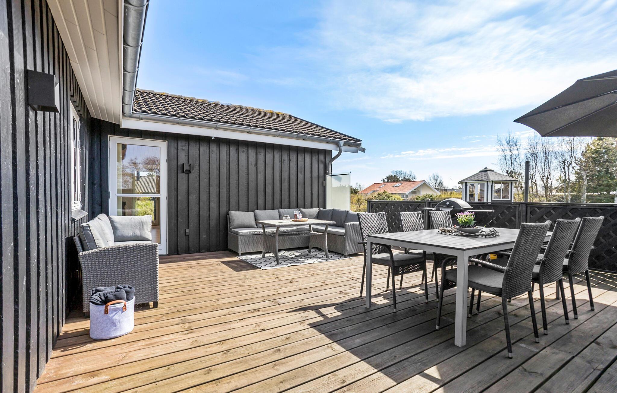 Treten Sie vom Wohnbereich auf die große Holzterrasse, die einen Großteil des Hauses umgibt. Legen Sie sich in die Sonne oder lesen entspannt ein Buch auf den Gartenmöbeln. Lassen Sie die grillmeister der Familie ein leckeres BBQ zubereiten und schauen Ihren Kindern beim Spielen im Garten zu. Am Abend können Sie sich in den schönen Panoramapavillon zurückziehen und beim Quatschen oder Kartenspielen viele Stunden verbringen.