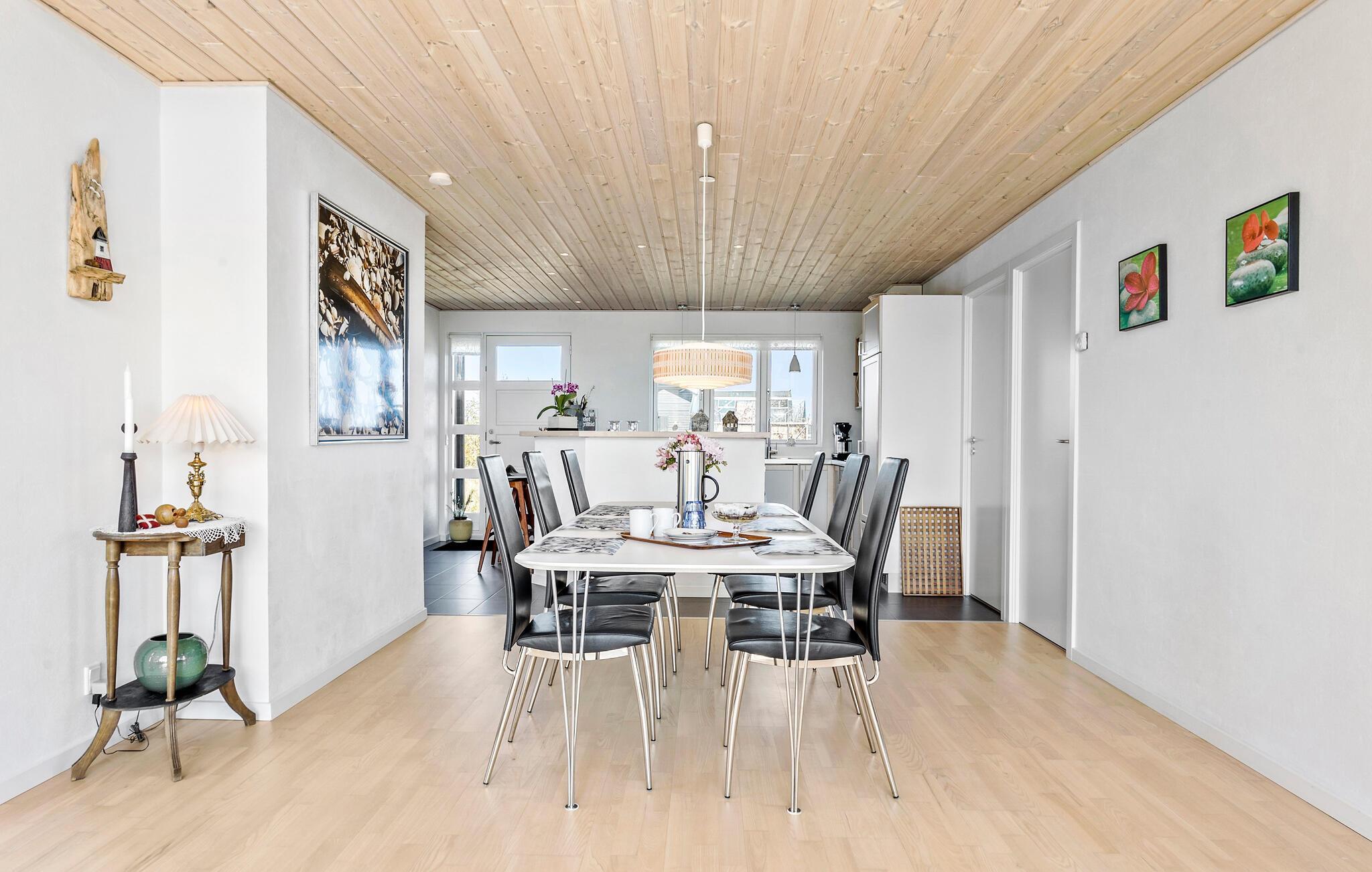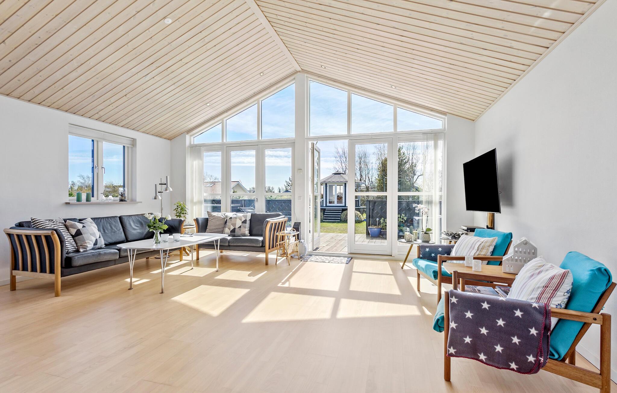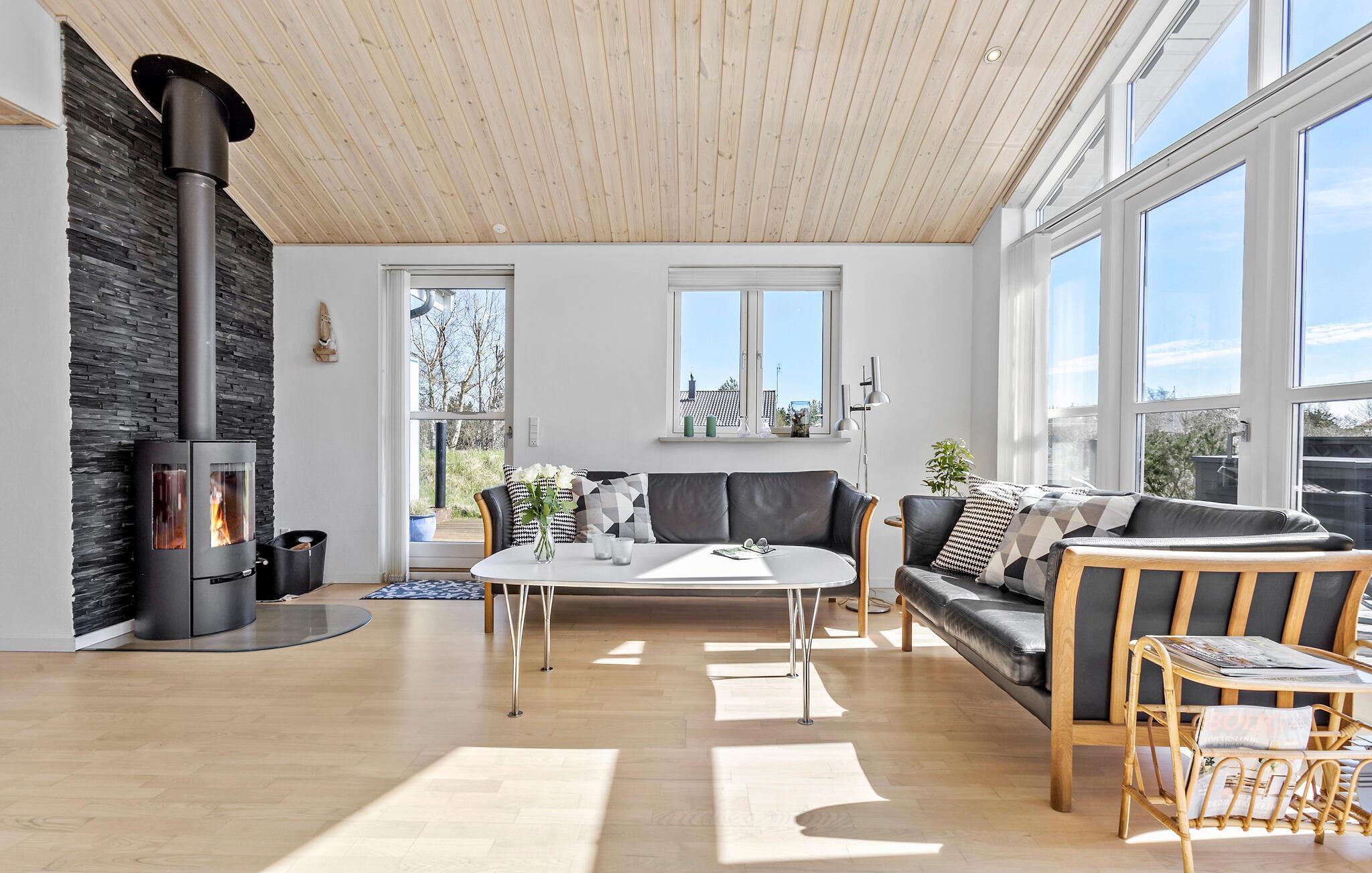 Willkommen in diesem hellen und freundlichen Ferienhaus. Genießen Sie mit Ihrer Familie die schönen Räume, die Ihnen alles bieten, was Sie zum Entspannen und Wohlfühlen brauchen. Der große Wohnraum ist dabei das Herzstück des Hauses, in dem Sie alle zusammenkommen und sich bei einem Filmabend unterhalten können. Relaxen Sie dabei bei einem Feuer im Holzofen, nachdem Sie in der Küche zusammen gekocht und am Esstisch gegessen haben.