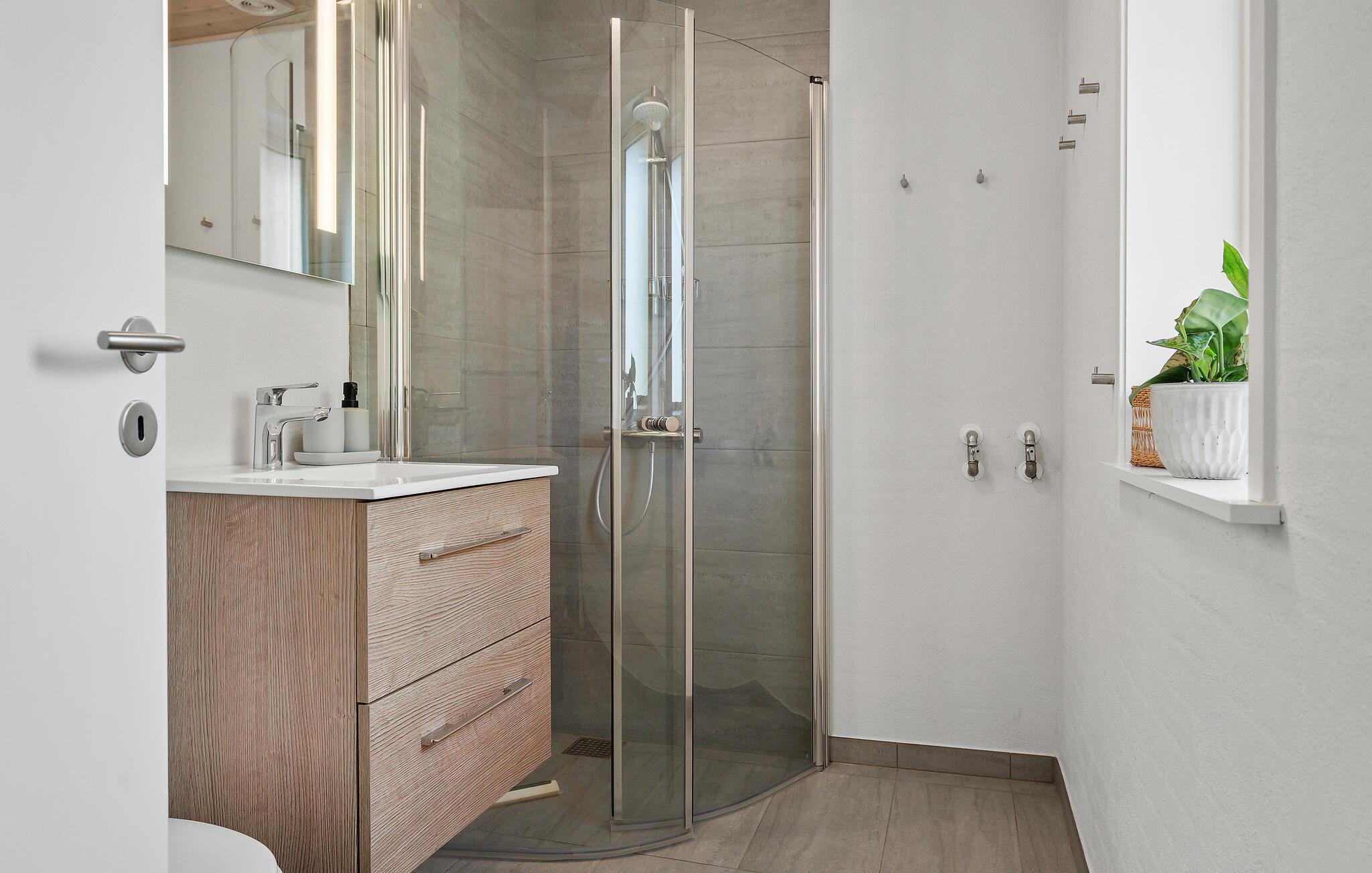 Der freundliche Wohnbereich empfängt Sie mit seinen großen Fenstern. Machen Sie es sich auf dem bequemen Sofa gemütlich und lassen Sie den Blick in die Natur schweifen oder lesen Sie ein Buch im stilvollen Sessel. Der Essbereich lädt zu gemeinsamen Mahlzeiten ein, während die angrenzende Küche mit moderner Ausstattung, großzügiger Arbeitsfläche und durchdachtem Design das Kochen zum Vergnügen macht.