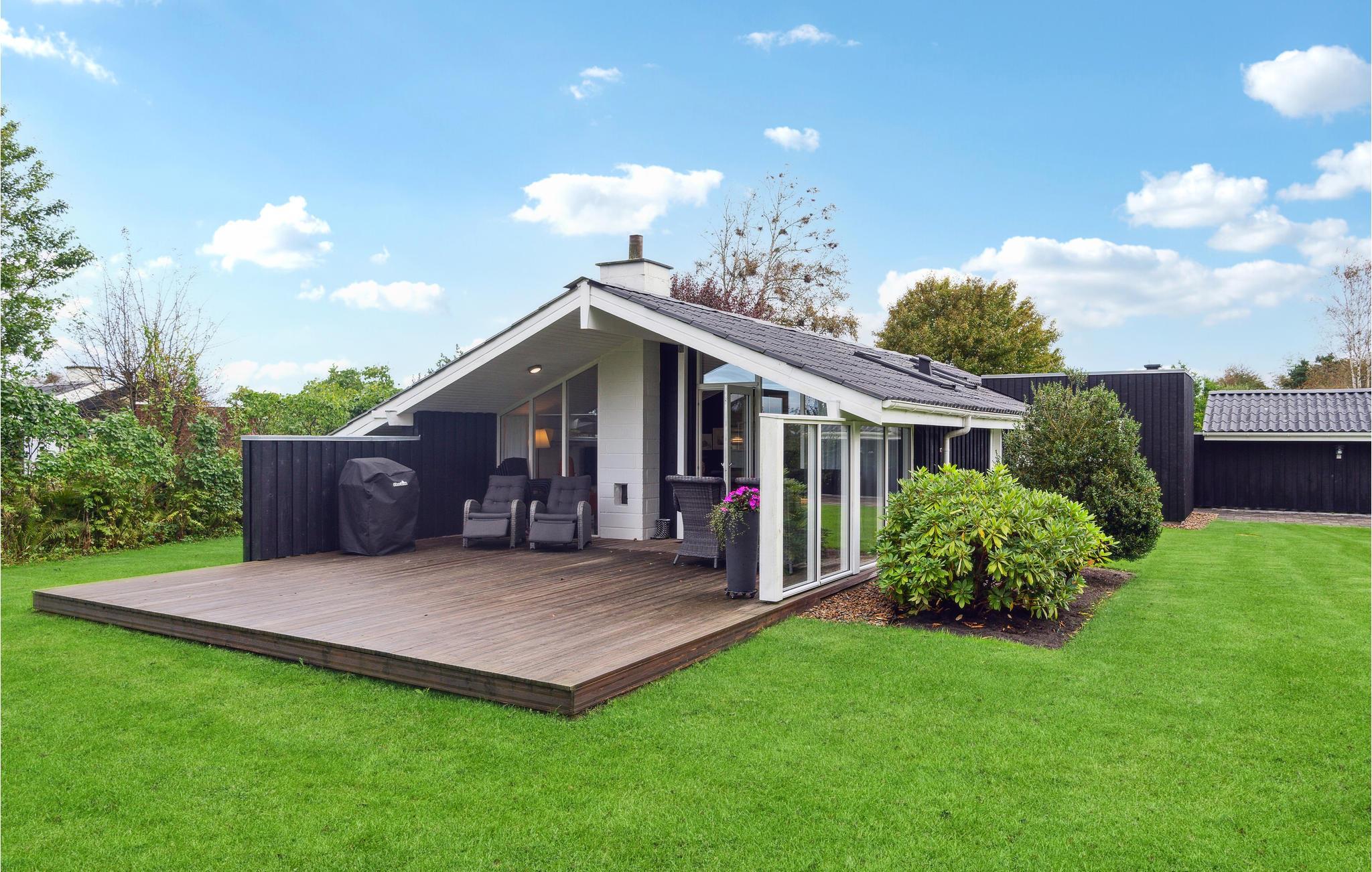 Genießen Sie ein stilvolles Ferienhaus nahe dem Meer mit Kamin, Garten und Terrasse in Frederikshavn, Dänemark.