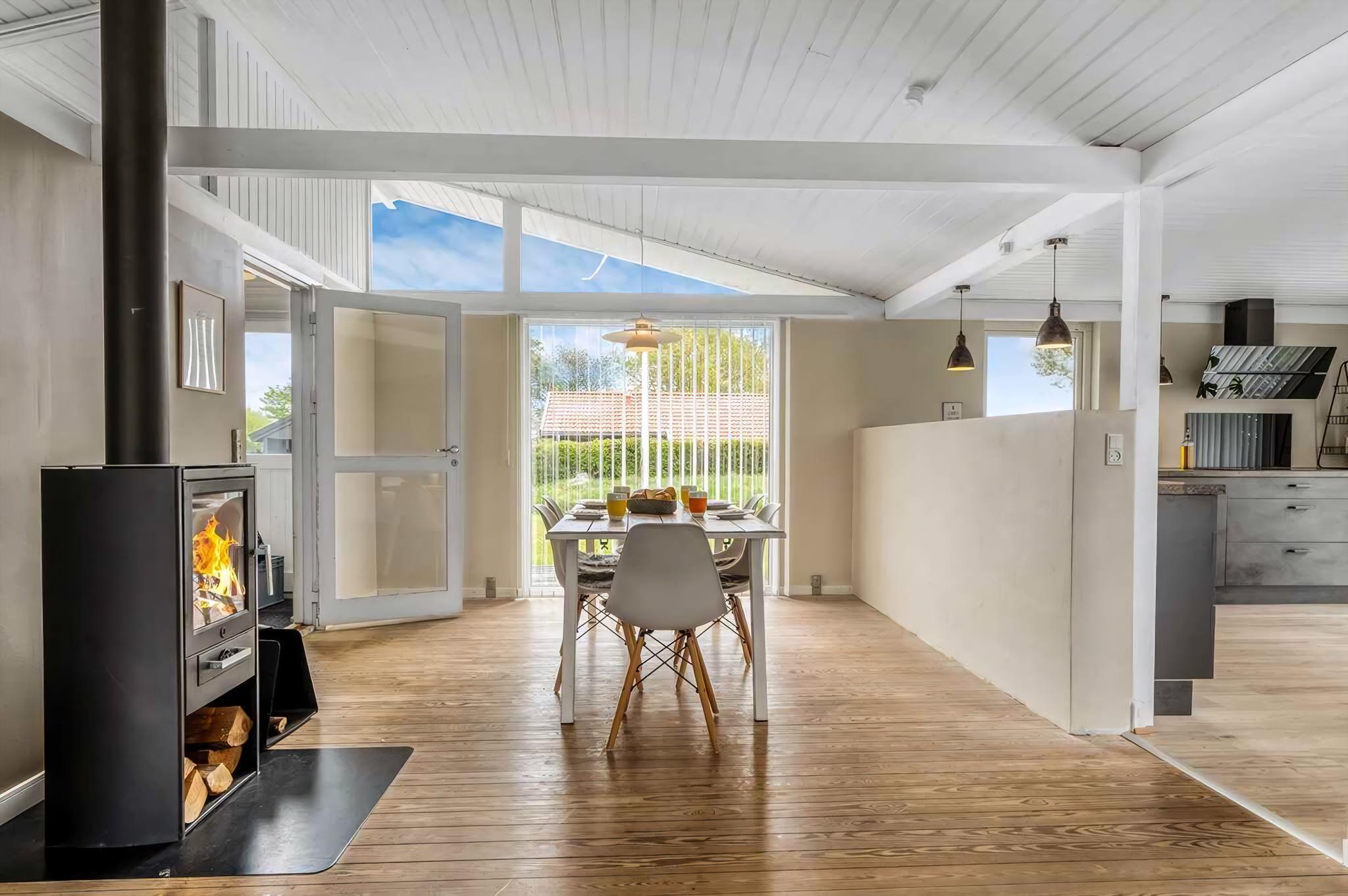 Dieses schöne Aktivitäts-Ferienhaus liegt nur wenige Schritte vom kinderfreundlichen Strand Frederikshavn PALMESTRANDEN entfernt und nahe der Stadt mit Fährverbindungen nach Læsø und Schweden. 150 m entfernt finden Sie einen Spielplatz mit Graswegen. Rund 500 m vom Haus liegt ein großes Indoor-Spielhaus (Fun House) mit Minigolfplatz. Am Rønnehavn (1 km) gibt es ein Restaurant und den bekannten Palmenstrand. Neu sind ein Padelzentrum und der 18-Loch-Golfplatz, nur 2,5 km entfernt. Das Haus eignet sich für Familien und Paare, mit vielen Möglichkeiten für Spaziergänge in schöner Natur. Platz für 5 Personen + 1 Kind bis 3 Jahre. Wohnfläche 119 m², Baujahr 1972, teilweise renoviert 2023. 2 Haustiere erlaubt. Mit Wärmepumpe, Waschmaschine, Trockner und Kaminofen. Für Kinder: Hochstuhl, Wickeltisch, Reisebett. Grundstück 1464 m², nur 350 m vom Meer. Nächster Laden 800 m entfernt. Offene Terrasse, Geräteraum, Fußballtor, Grill, Carport und Parkplätze. Aktivitätsraum: Tischtennis, Darts, Airhockey, Mini-Kicker. 2 Schlafzimmer mit: 1 Einzelbett, 1 Etagenbett, 2 verstellbare Betten. Küche: Kühlschrank, Gefrierschrank, 4 Induktionsfelder, Umluftofen, Mikrowelle, Geschirrspüler.