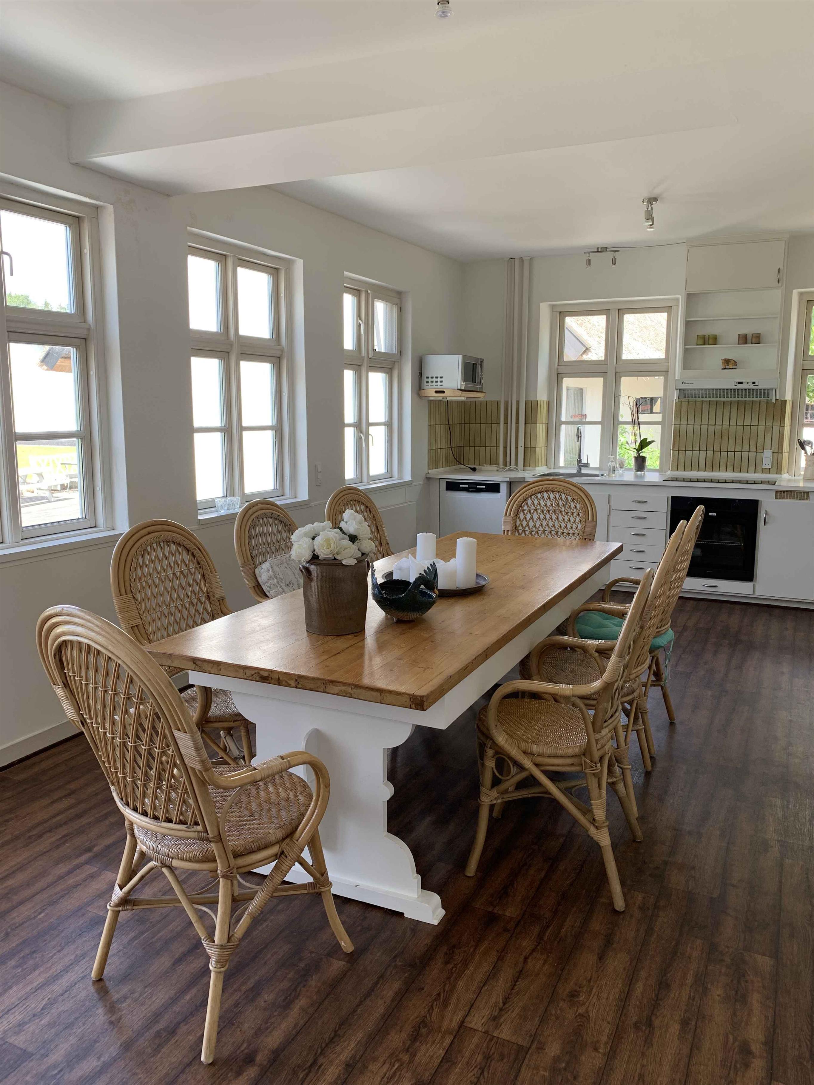 Großes Ferienhaus mit 450 m², vier Schlafzimmern und acht Schlafplätzen. Viel Platz für Familien und Freundesgruppen, großzügige Wohnbereiche, ruhige Umgebung und Raum für Gemeinschaft und Rückzug.