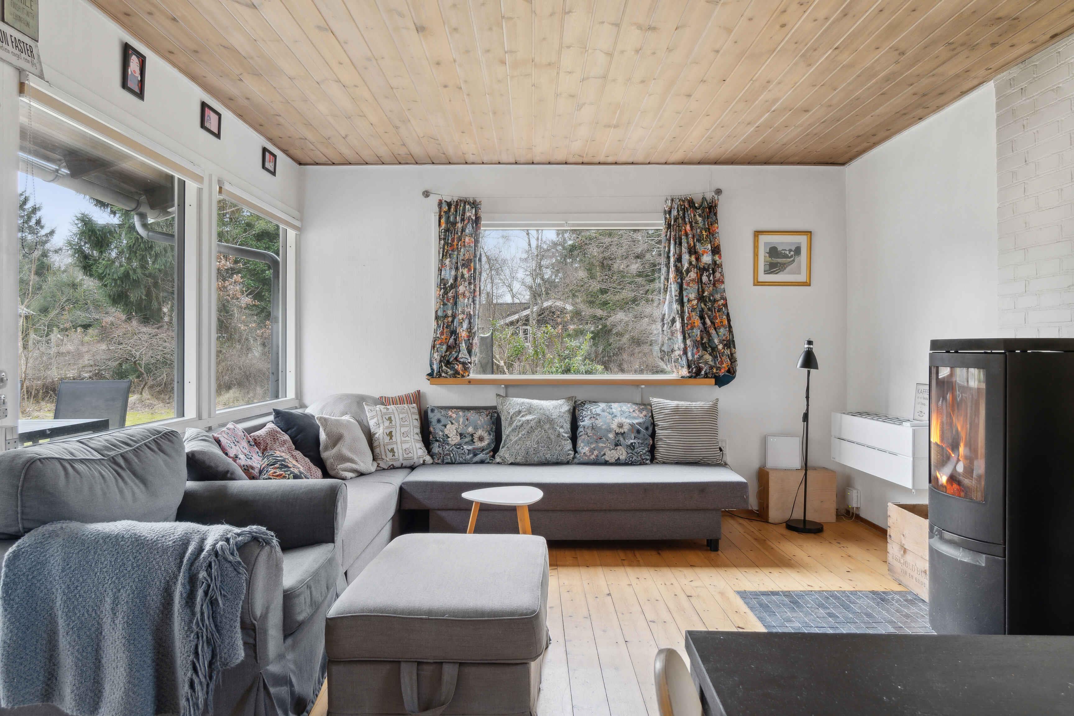 Entspannen Sie im charmanten Ferienhaus Pusterum in der ruhigen Asserbo Plantage mit großem Garten und Terrasse.
