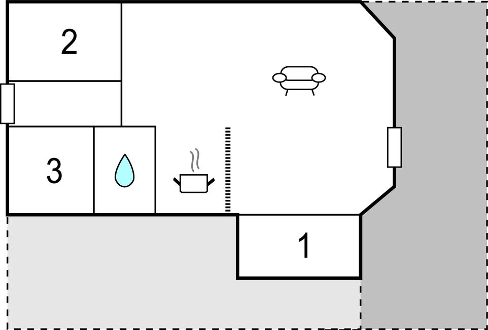 Schlafzimmer 7m2 (nr. 3) - 1 Schlafmöglichkeit. (Einzelbett(en)).