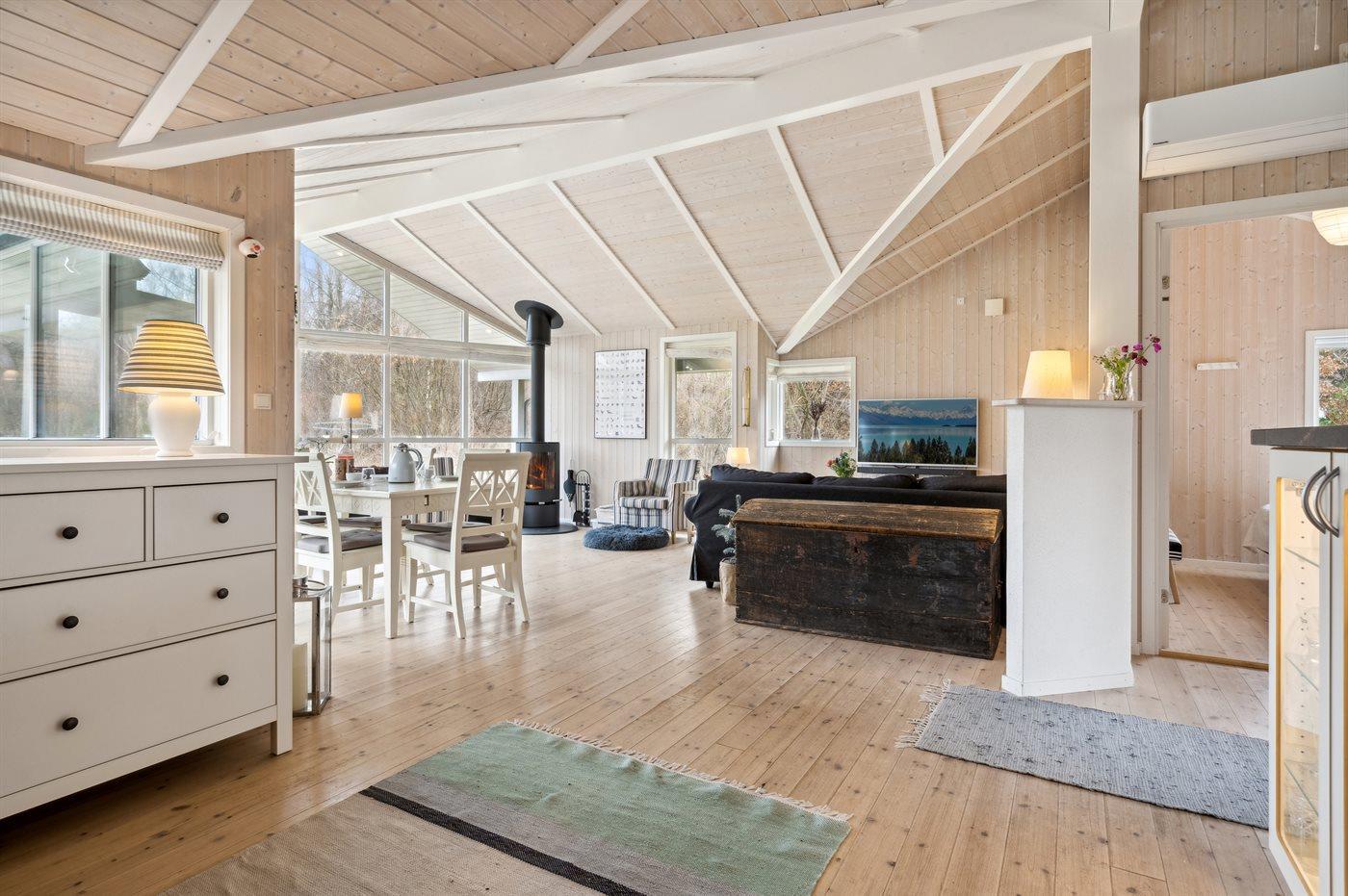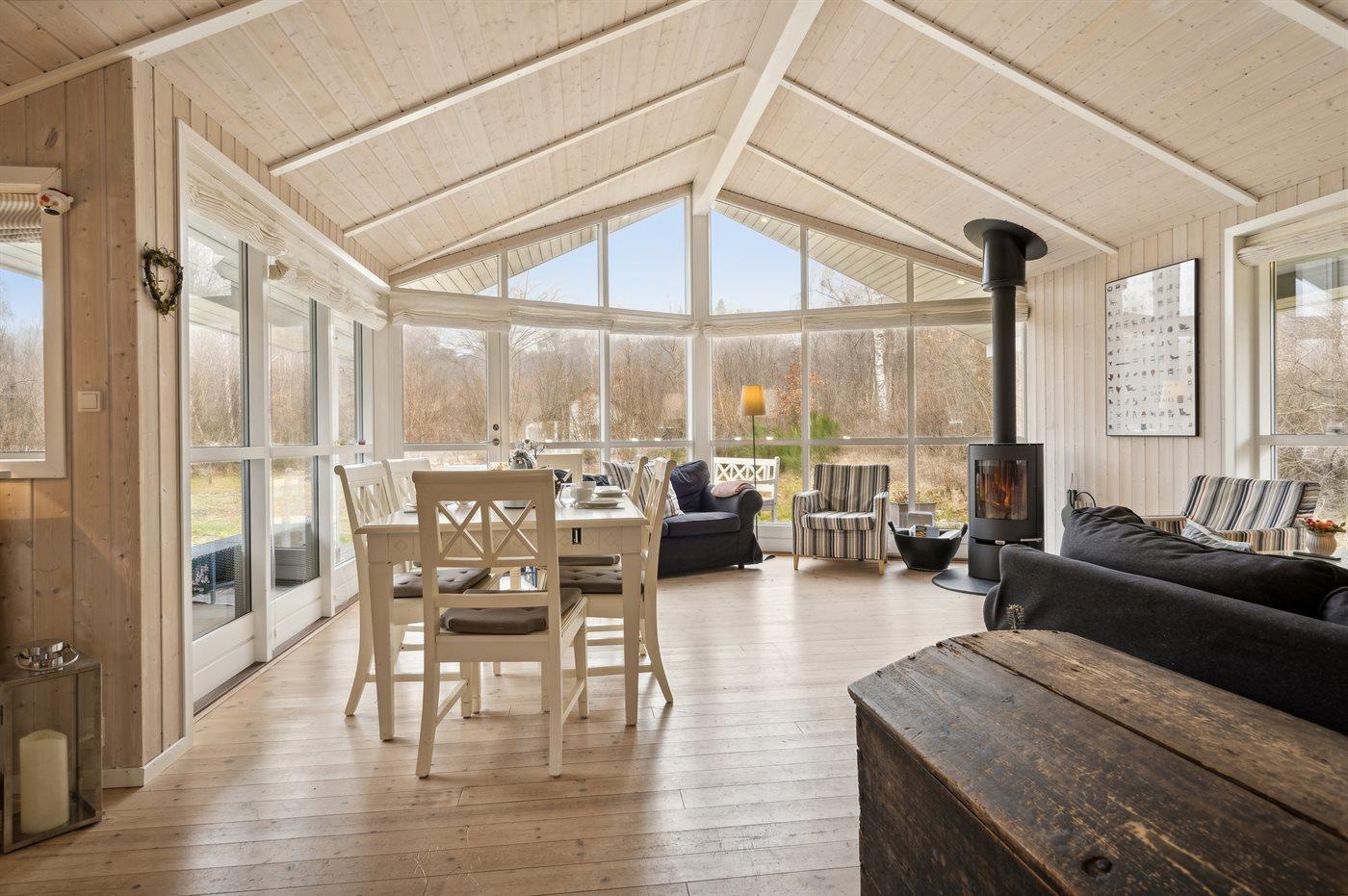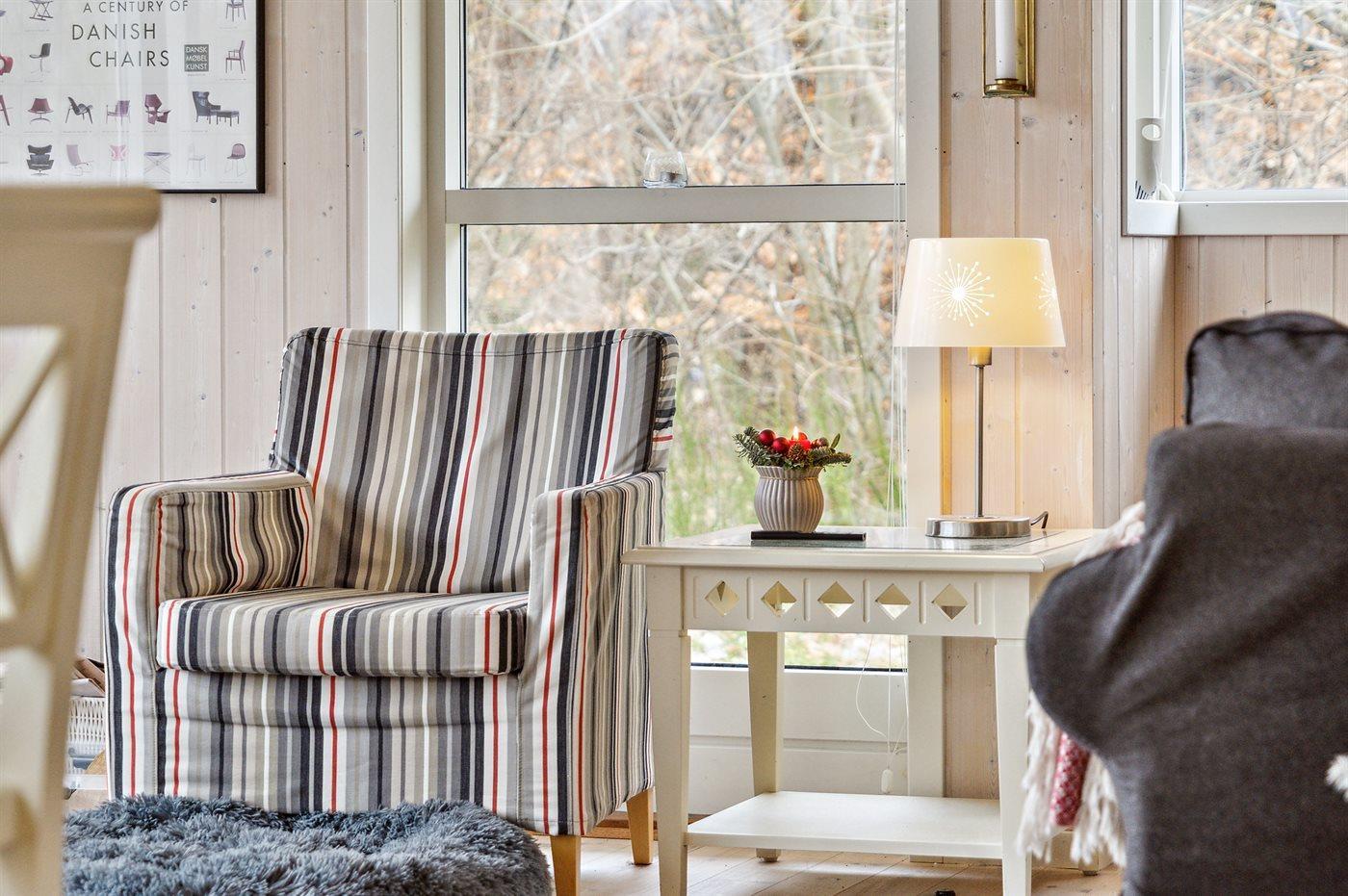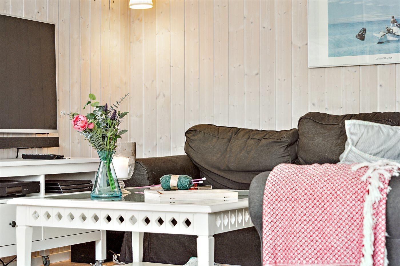 Das Ferienhaus tritt hell und modern hervor - mit einer wirklich guten Einrichtung. Von dem hellen Wohnzimmer aus, kann man direkt auf die große Terrasse treten und den Blick auf die schöne Umgebung genießen. Hier besteht immer die Möglichkeit, eine windgeschützte Ecke zu finden und die Sonne zu genießen - sei es auf der Terrasse, die zum Garten hin ausgerichtet ist, oder auf der gemütlichen und abgeschirmten Terrasse auf der Vorderseite des Hauses – wo man sich ungestört aufhalten kann.