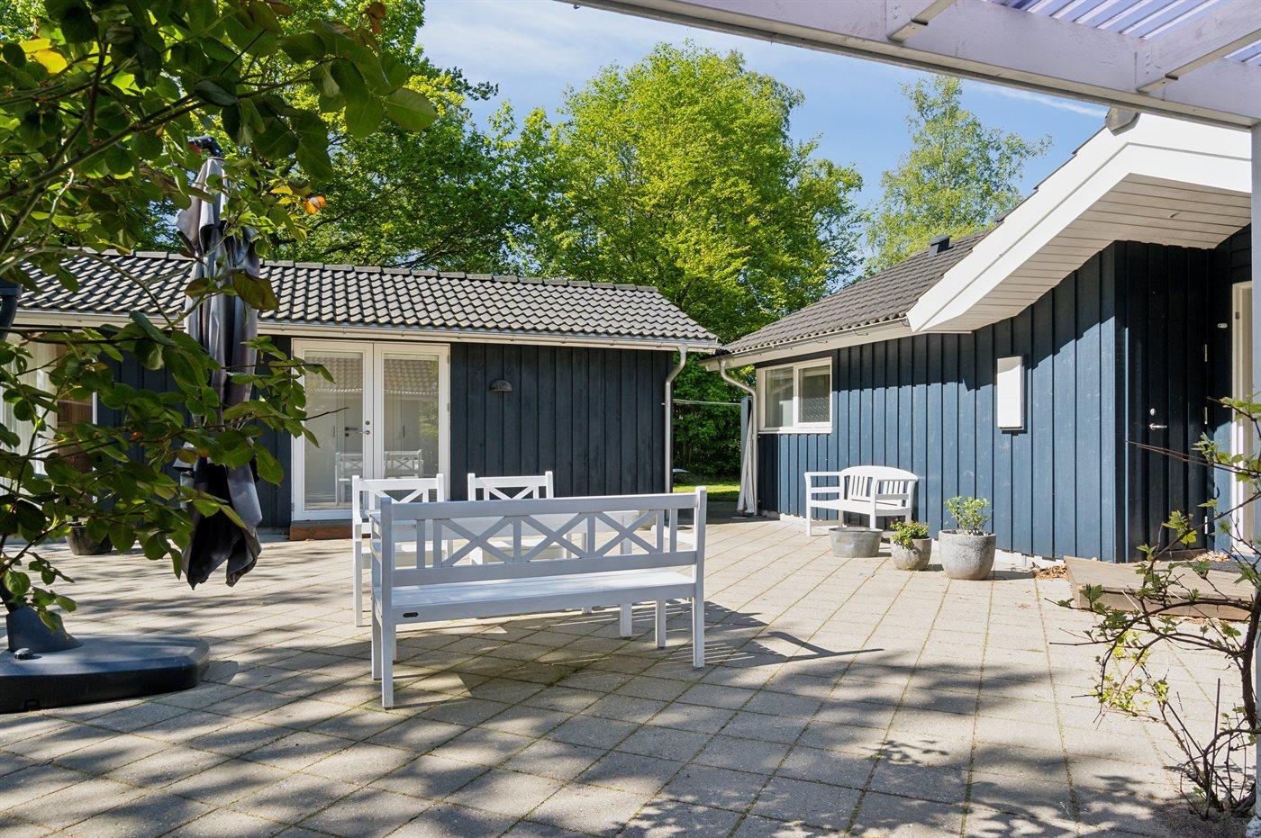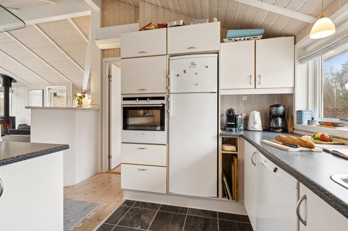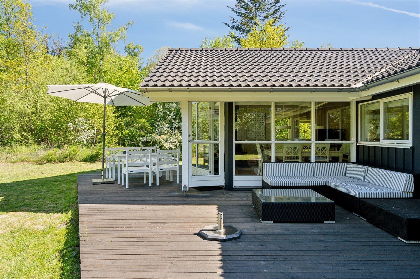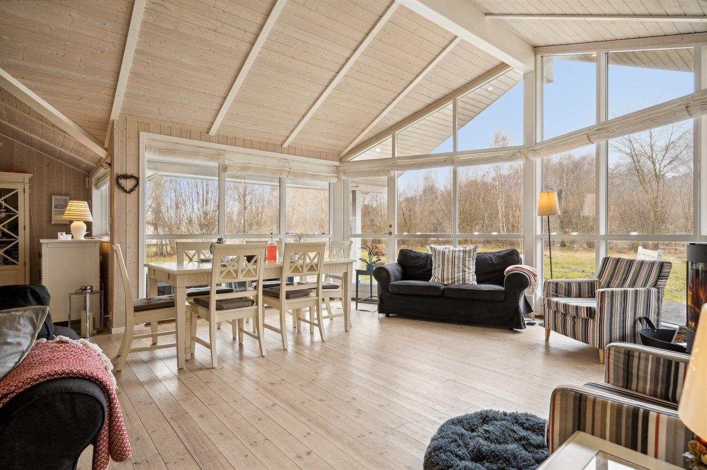 Das Ferienhaus tritt hell und modern hervor - mit einer wirklich guten Einrichtung. Von dem hellen Wohnzimmer aus, kann man direkt auf die große Terrasse treten und den Blick auf die schöne Umgebung genießen. Hier besteht immer die Möglichkeit, eine windgeschützte Ecke zu finden und die Sonne zu genießen - sei es auf der Terrasse, die zum Garten hin ausgerichtet ist, oder auf der gemütlichen und abgeschirmten Terrasse auf der Vorderseite des Hauses – wo man sich ungestört aufhalten kann.