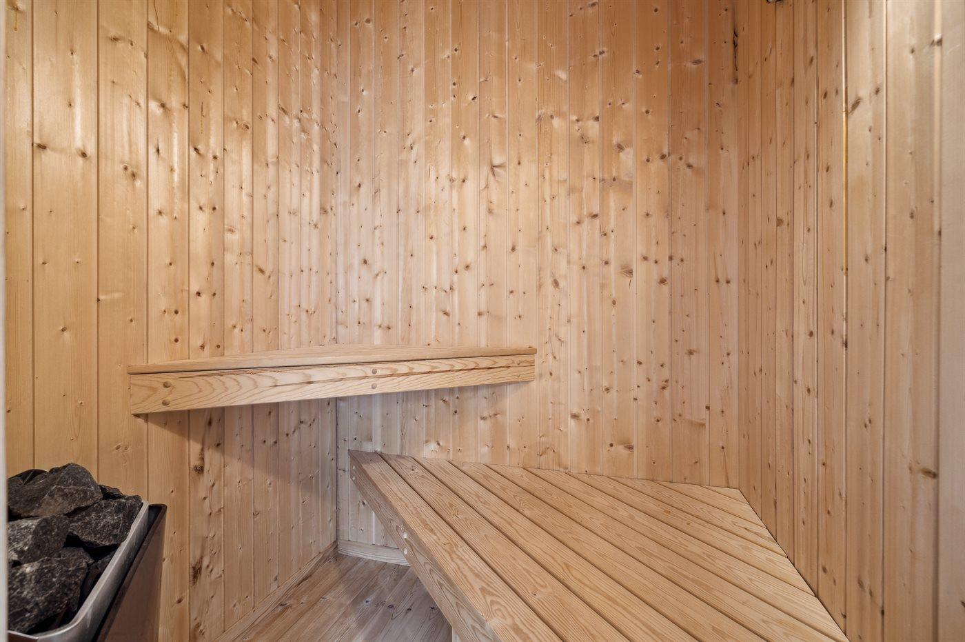 Es gibt 2 Badezimmer mit Duschnische und 3 Toiletten, davon 1 Gästetoilette. Fußbodenheizung in 2 Badezimmern. Fußbodenheizung in der Gästetoilette. Es steht eine Sauna zur Verfügung in der Sie sich so richtig entspannen können.