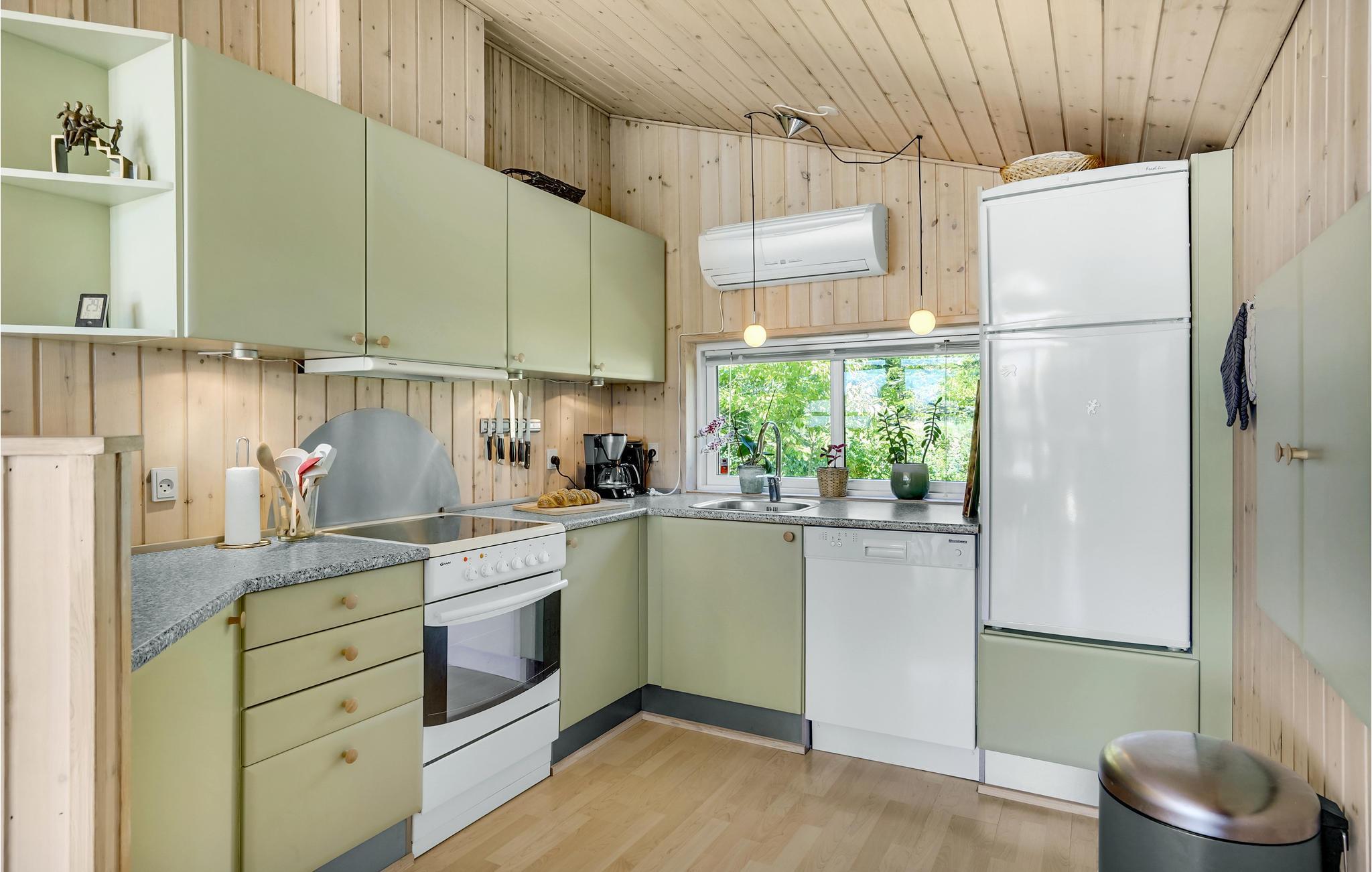 Die offene und gut ausgestattete Küche sowie der helle Wohnbereich bilden den Mittelpunkt des Hauses. Genießen Sie hier die gemeinsamen Mahlzeiten oder entspannen Sie nach einem aktiven Urlaubstag auf dem Sofa vor einem prasselnden Feuer im Kamin. Ihnen stehen außerdem gemütliche Schlafzimmer und zwei Badezimmer zur Verfügung. Nach einem aktiven Urlaubstag laden ebenfalls die Sauna und der Whirlpool zum Entspannen ein.