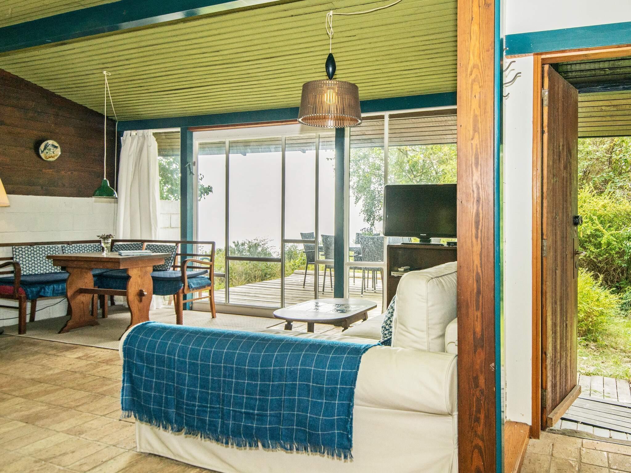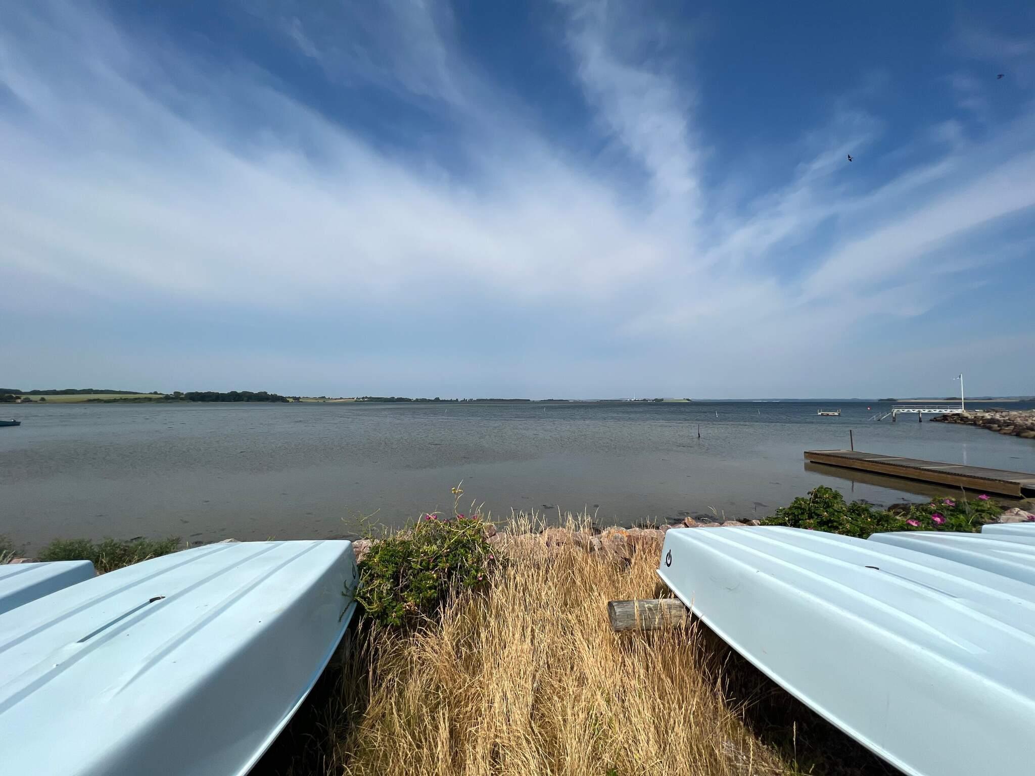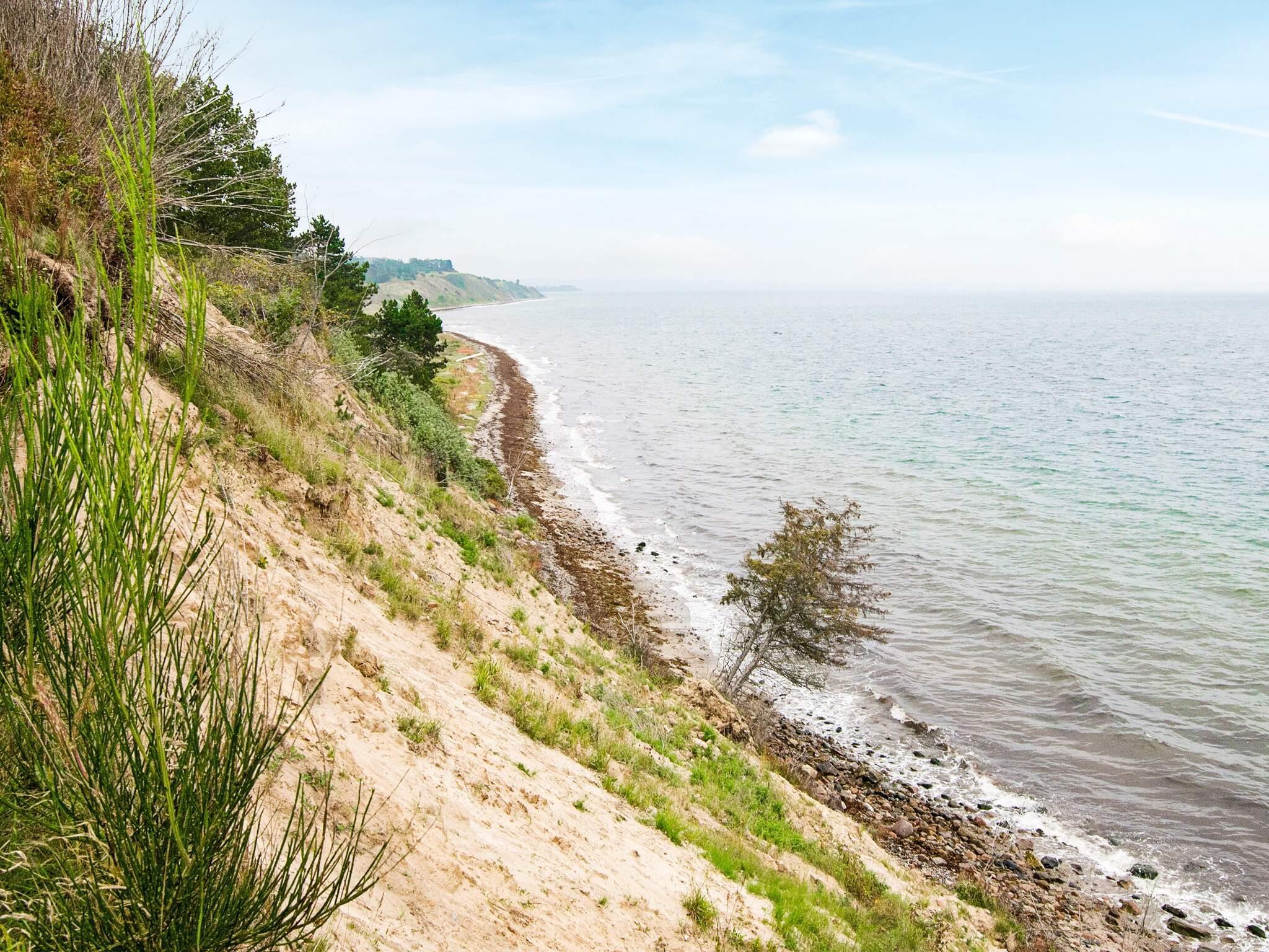 Ferienhaus auf einem sehr attraktiven, üppig bewachsenen und damit schön geschützten Naturgrundstück bei Fuglsøvig. Das Grundstück erstreckt sich den Hang hinunter und bis zum Ostseeufer. Oben von der nicht eingefassten Holzterrasse genießen Sie erstklassigen Meerblick!