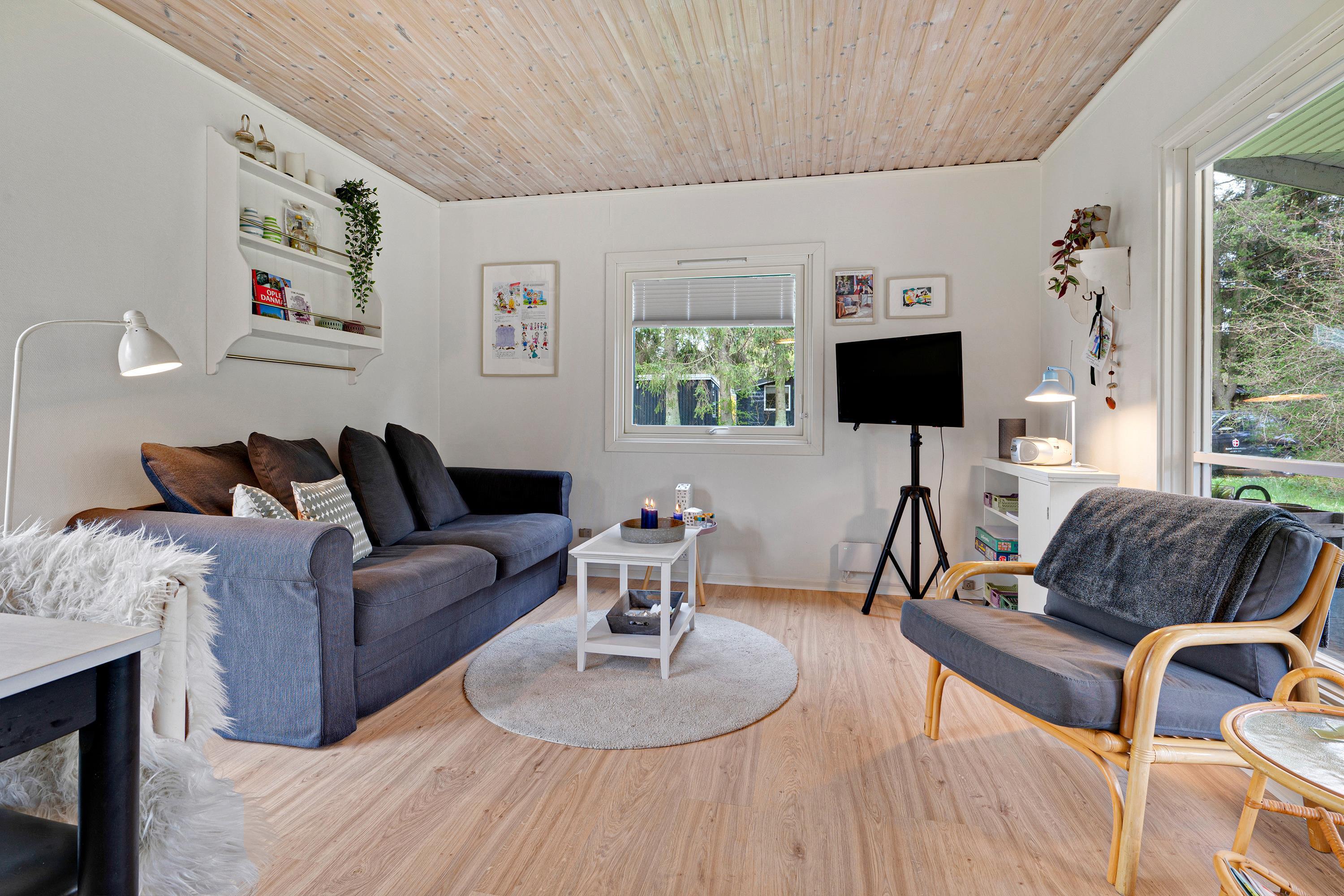 Sehr gemütliches, älteres und neu renoviertes Ferienhaus auf gepflegtem Naturgrundstück im schönen und ruhigen Fuglslev. Schöne, nach Westen ausgerichtete und teilweise überdachte Holz-/Fliesenterrasse mit Gartenmöbeln und Grill, außerdem verfügt das Haus über einen abschließbaren Schuppen. Ein geeignetes Haus für die kleine Familie oder zwei Paare.