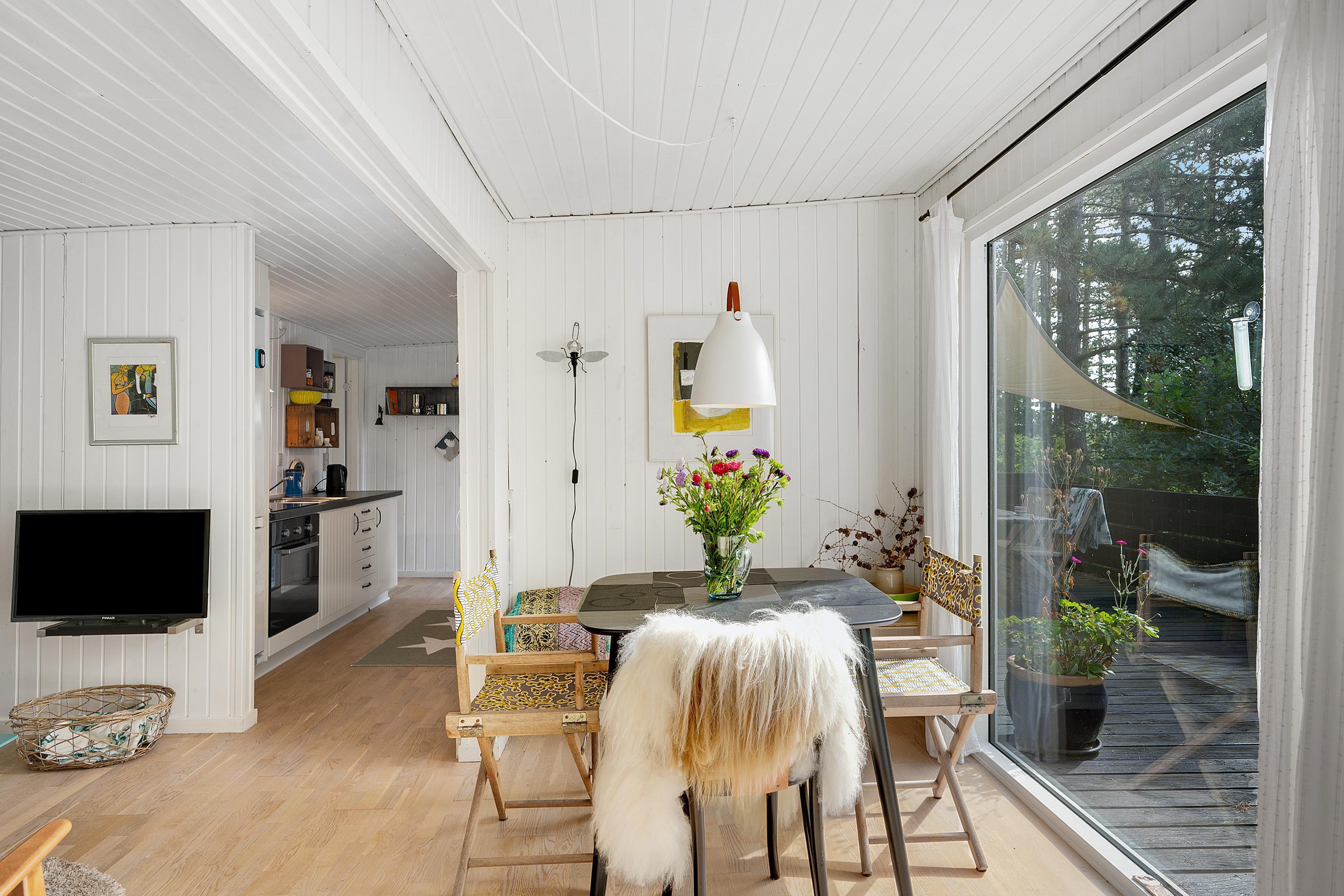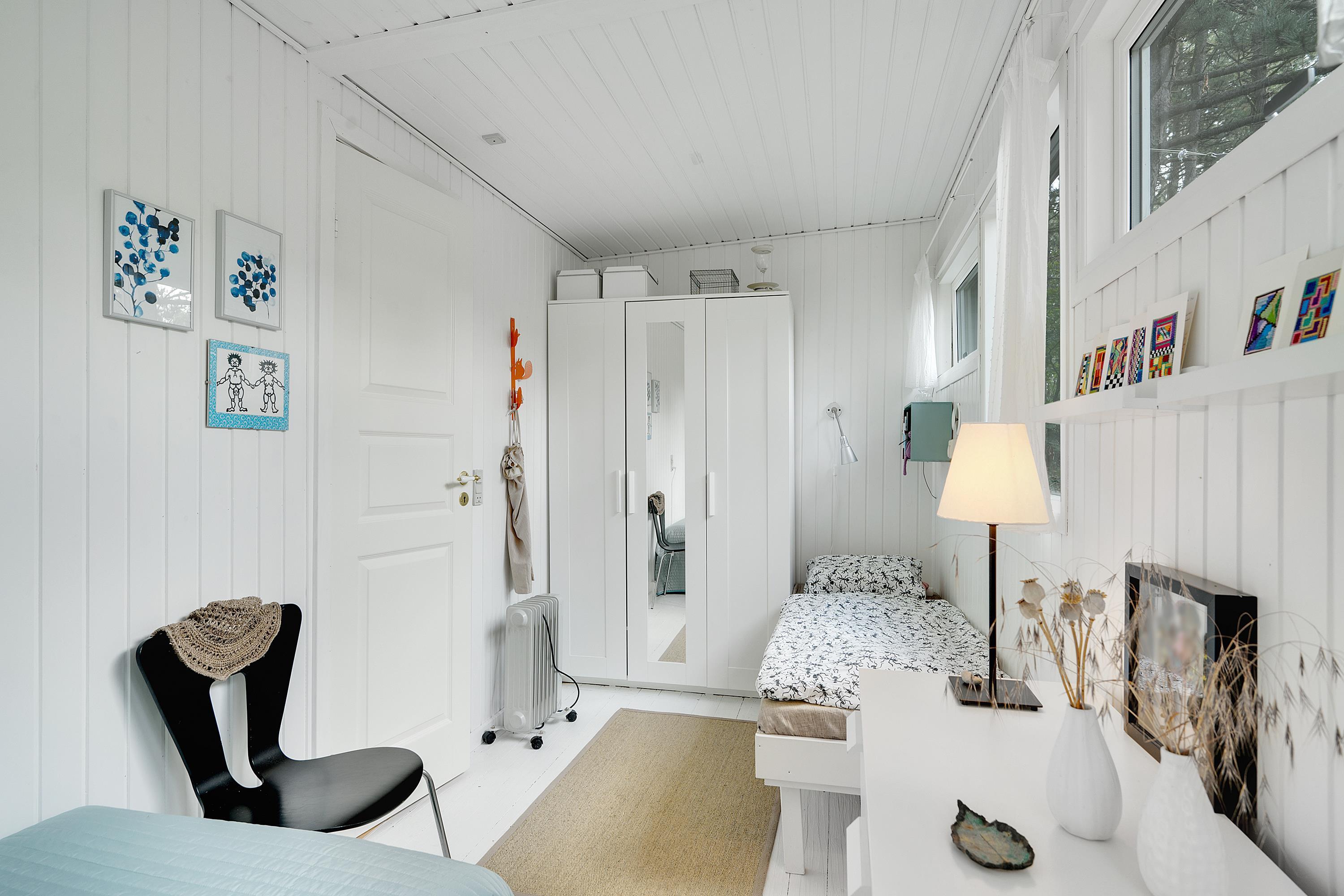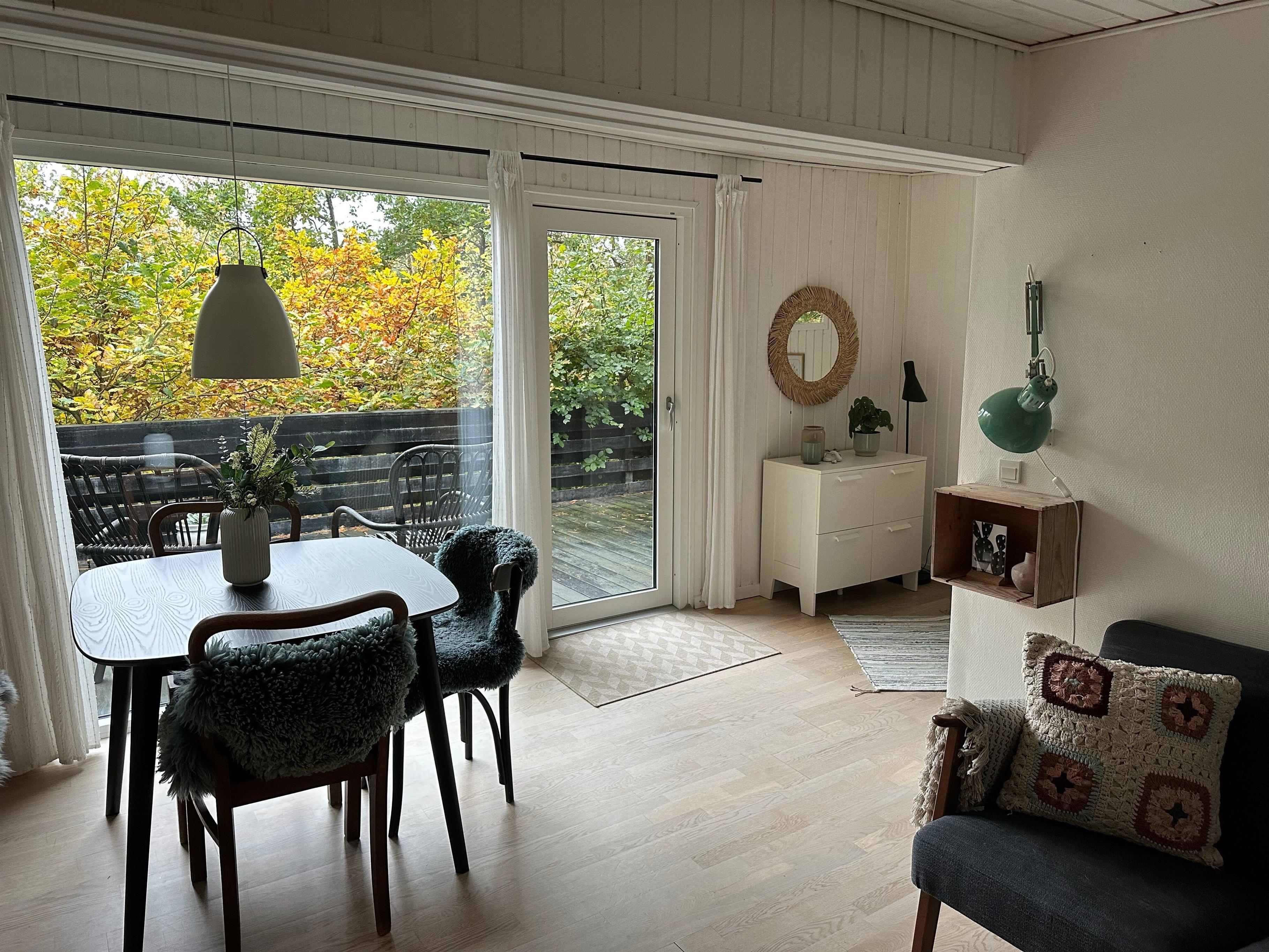 In der tiefen Stille des Waldes finden Sie dieses kleinere und sehr gemütliche Ferienhaus für 3 Personen. Hier finden Sie einen kleinen Eingang für Schuhe und Oberbekleidung. Gemütlich eingerichtetes und helles Wohnzimmer mit TV (Chromecast) und Zugang zu einer schönen Terrasse mit Gartenmöbeln. In Verbindung mit dem Wohnzimmer befindet sich die kleinere, aber gut funktionierende Küche. Zwei gepflegte und gemütlich eingerichtete Schlafzimmer, wobei sich in einem Zimmer zwei Einzelbetten und im anderen ein Einzelschlafbett befinden. Neueres Badezimmer mit Dusche. Das Haus liegt abgeschieden und unauffällig auf einem schönen Naturgrundstück und in einem wunderschönen Naturgebiet, in dem an Silvester kein Feuerwerk abgefeuert werden darf.