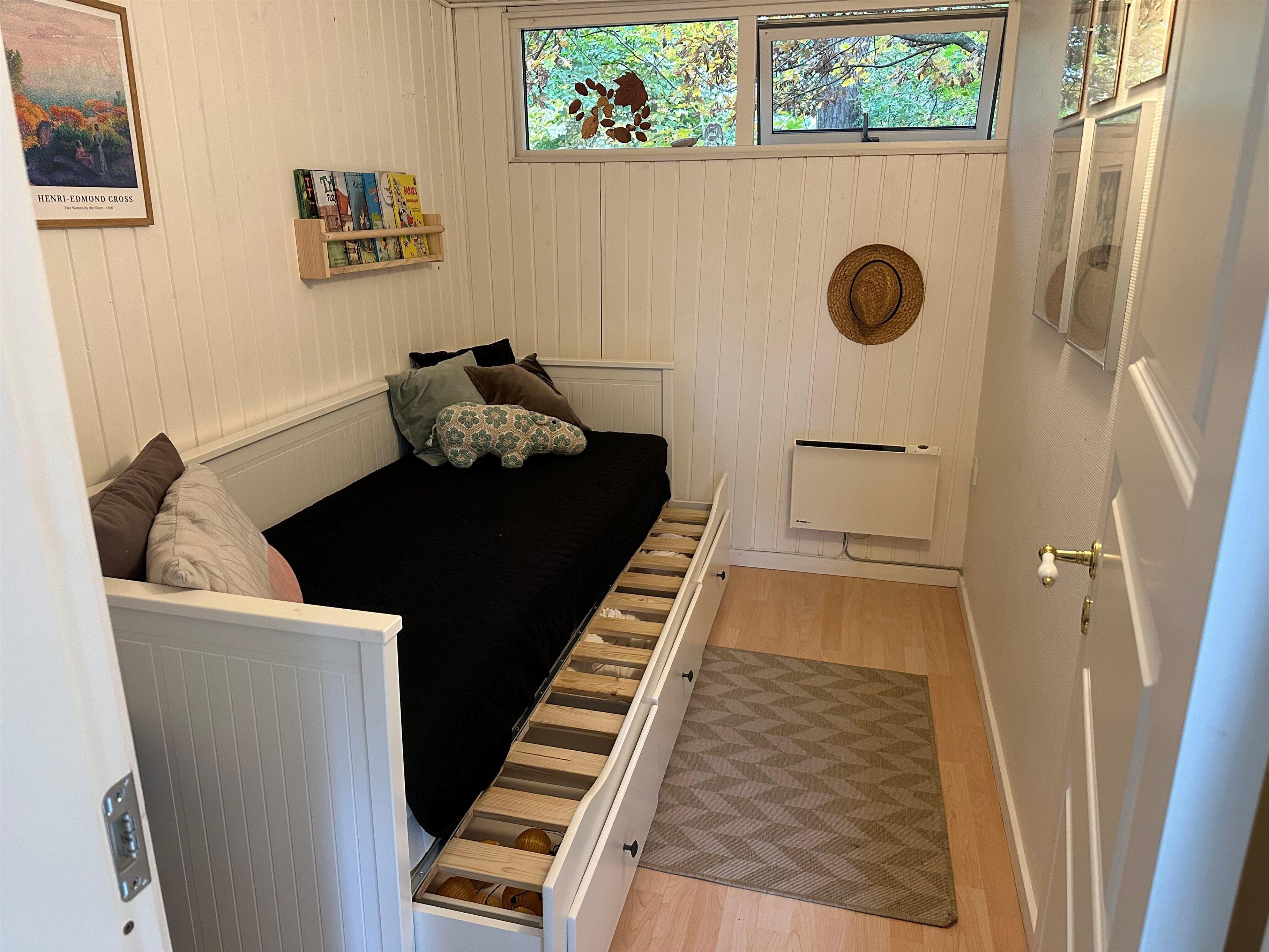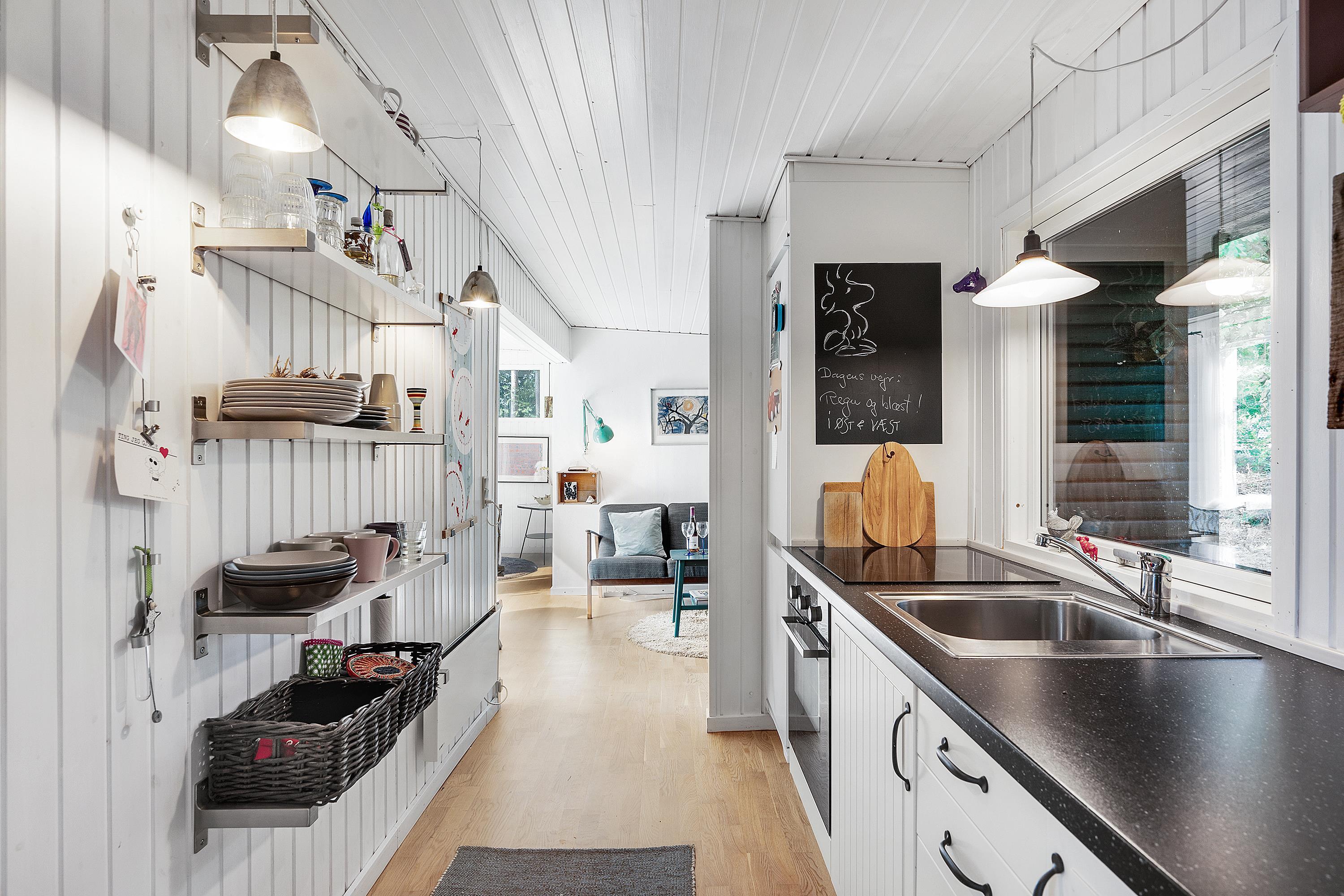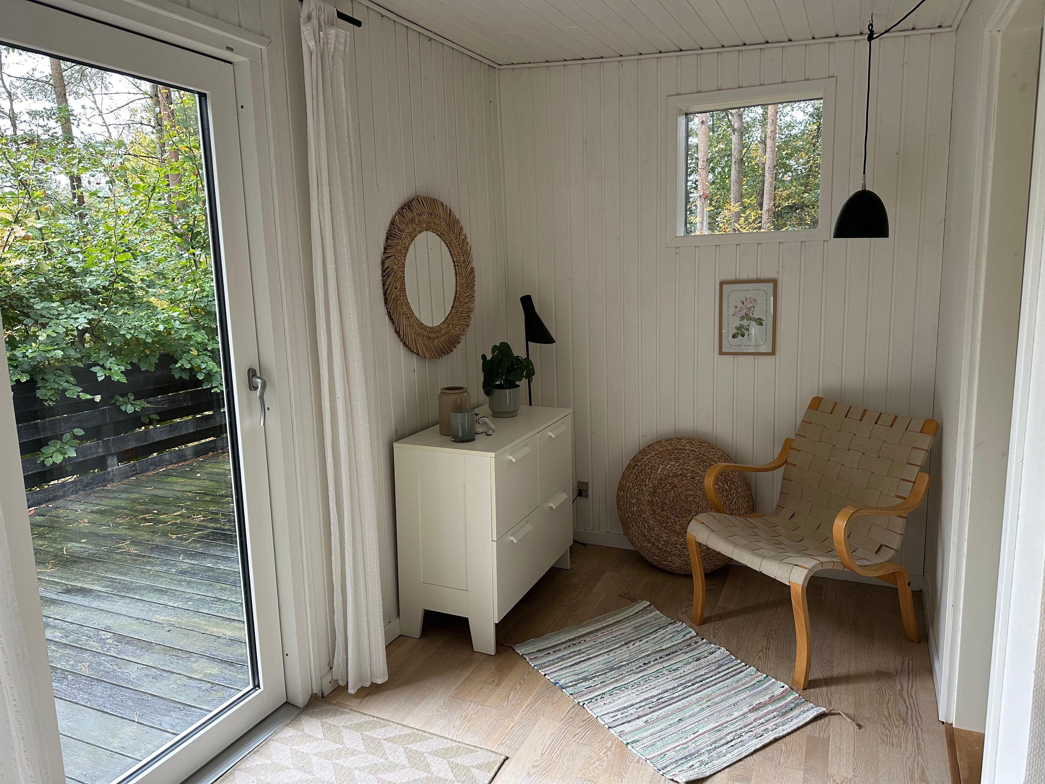 In der tiefen Stille des Waldes finden Sie dieses kleinere und sehr gemütliche Ferienhaus für 3 Personen. Hier finden Sie einen kleinen Eingang für Schuhe und Oberbekleidung. Gemütlich eingerichtetes und helles Wohnzimmer mit TV (Chromecast) und Zugang zu einer schönen Terrasse mit Gartenmöbeln. In Verbindung mit dem Wohnzimmer befindet sich die kleinere, aber gut funktionierende Küche. Zwei gepflegte und gemütlich eingerichtete Schlafzimmer, wobei sich in einem Zimmer zwei Einzelbetten und im anderen ein Einzelschlafbett befinden. Neueres Badezimmer mit Dusche. Das Haus liegt abgeschieden und unauffällig auf einem schönen Naturgrundstück und in einem wunderschönen Naturgebiet, in dem an Silvester kein Feuerwerk abgefeuert werden darf.
