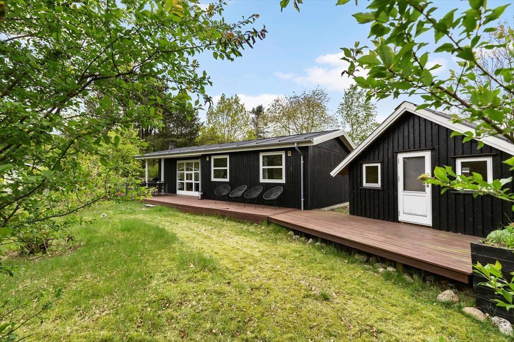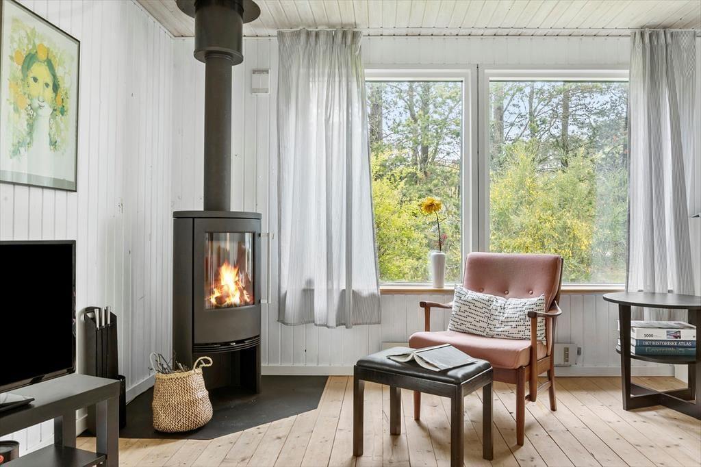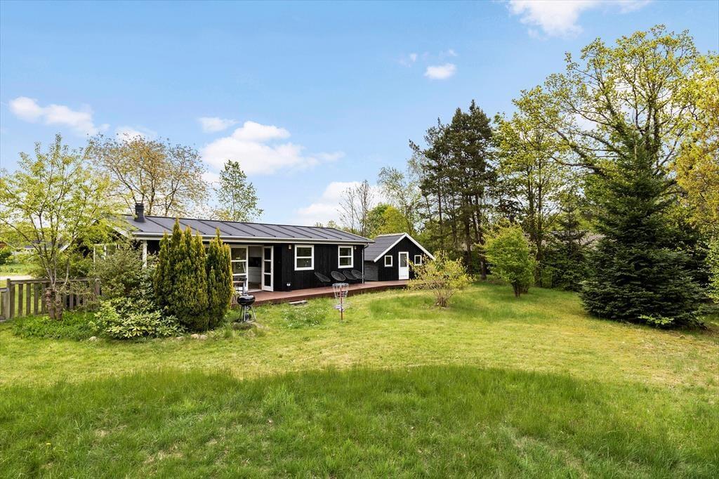 Inmitten des schönen Walds, nicht weit abseits von Ebeltoft, erwartet Sie dieses gemütliche Ferienhaus, bei dem der Eigentümer viel Wert auf eine stimmungsvolle Atmosphäre gelegt hat. Das Urlaubsdomizil begrüßt Sie mit einem ansprechenden Wohnraum. In diesem können Sie nah am Kaminofen lesen, mit den Kindern Spiele spielen und sich bei einem guten Film auf dem Sofa entspannen. In einer Ecke des Wohnraums ist der gemütliche Esstisch platziert. Die helle, funktionelle Küche fügt sich offen in den Wohnraum ein. Zwei Schlafräume mit jeweils einem Doppelbett und ein Schlafraum mit einem Etagenbett stehen bereit.