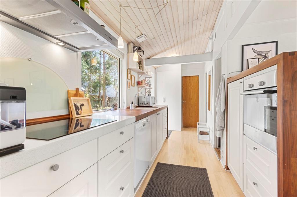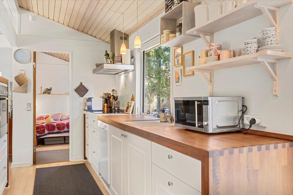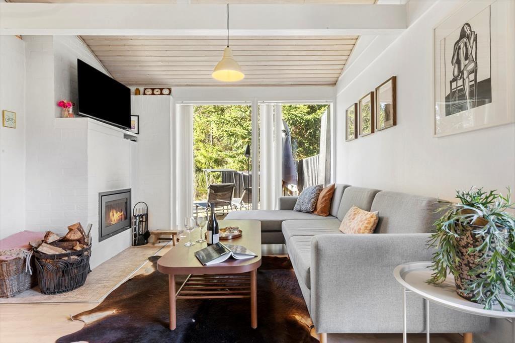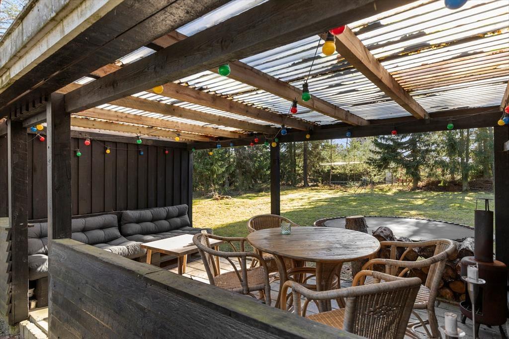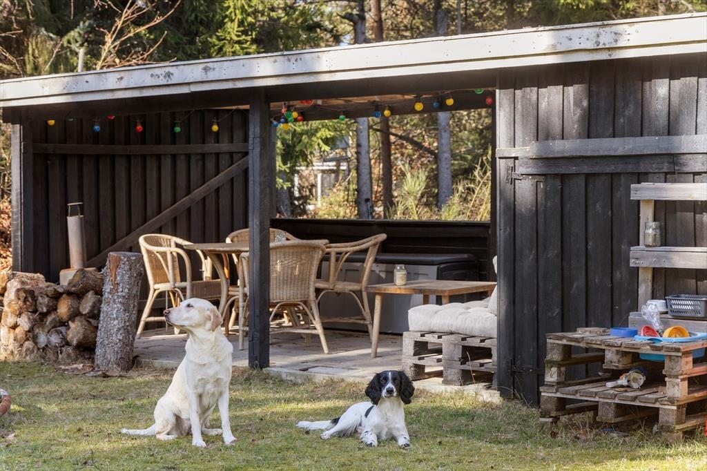 Vom Frühstück auf der Terrasse bis hin zu den langen, hellen Sommerabenden unter freiem Himmel - die Möglichkeiten, die Urlaubstage an der frischen Luft zu genießen, sind nahezu unbegrenzt. Dein Ferienhaus liegt auf einem großen, teilweise umzäunten Naturgrundstück, auf dem deine Kinder und euer Hund vergnügt umhertollen können, während du deine ganz eigene friedvolle Naturoase entdecken kannst. Die Grasfläche animiert zum Ballspielen und Picknicken in der Sonne. Die Gartenmöbel laden zu erholsamen Stunden in der Sonne und an der frischen Luft ein - unabhängig davon, ob du den Tag mit einem ausgedehnten Frühstück beginnst oder mit einem Abendessen vom Grill, Sonnenuntergang und einem Glas Wein in der Hand beendest.