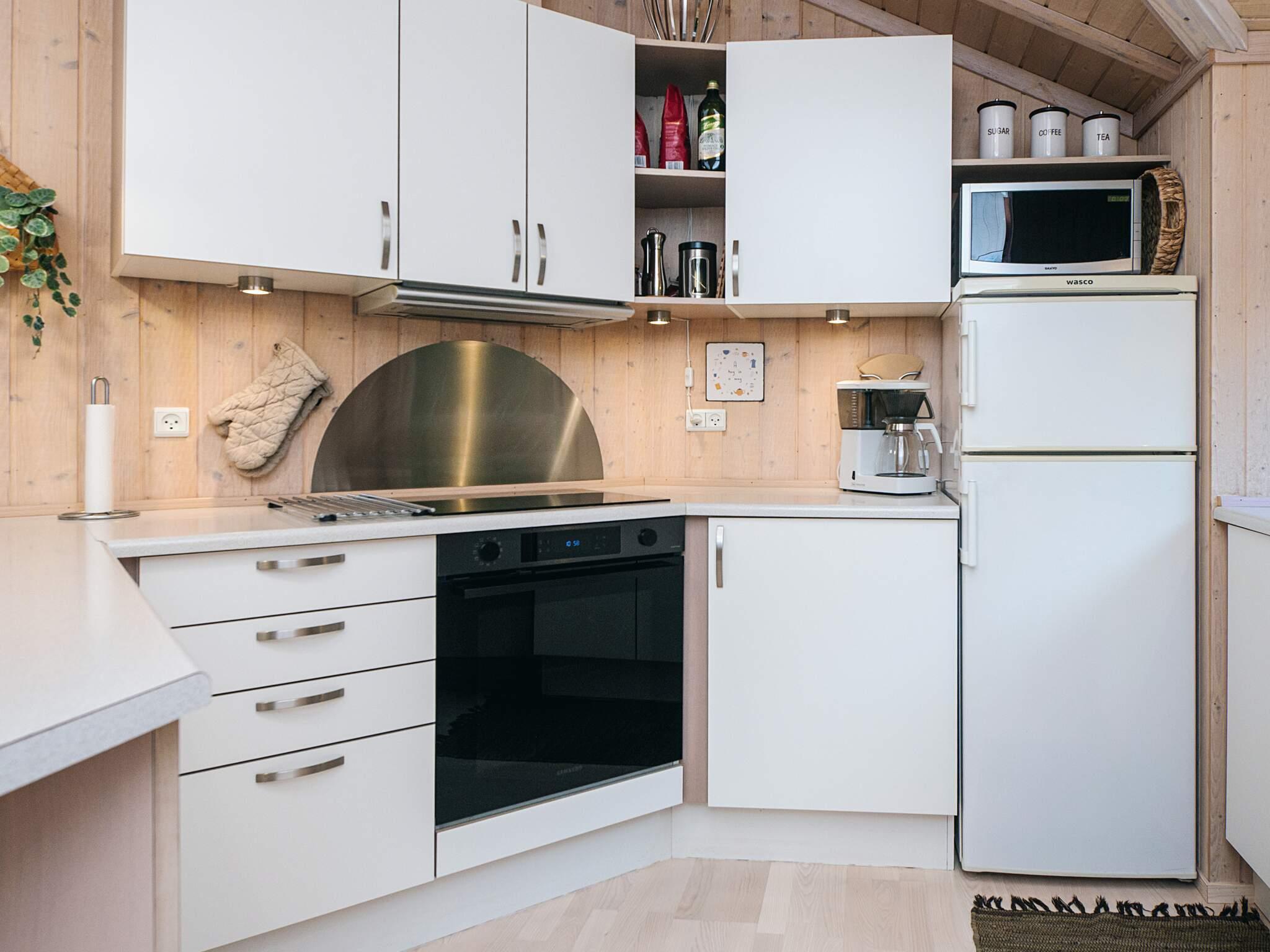 Und: Terrasse, überd. Terrasse, Carport, Außendusche, E-Heiz., Luft-Luft-Wärmepumpe, Grill, Naturgrundst. m. Bäumen 1200 m2, moderne Möblierung, Ferienhausgebiet, Nichtraucherhaus