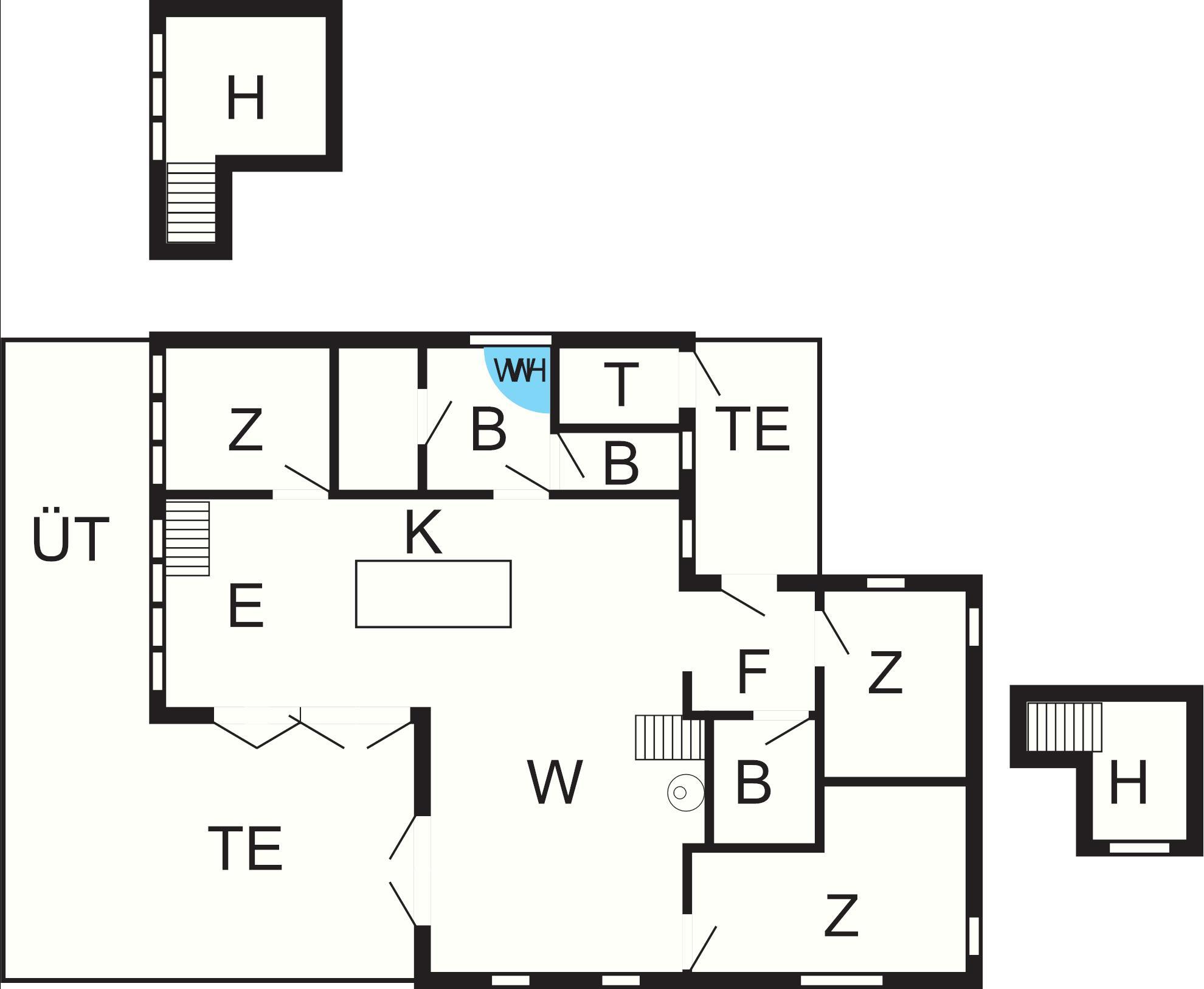 Bad: Waschm, Trockner, Waschb., Dusche, Fußbodenheiz.