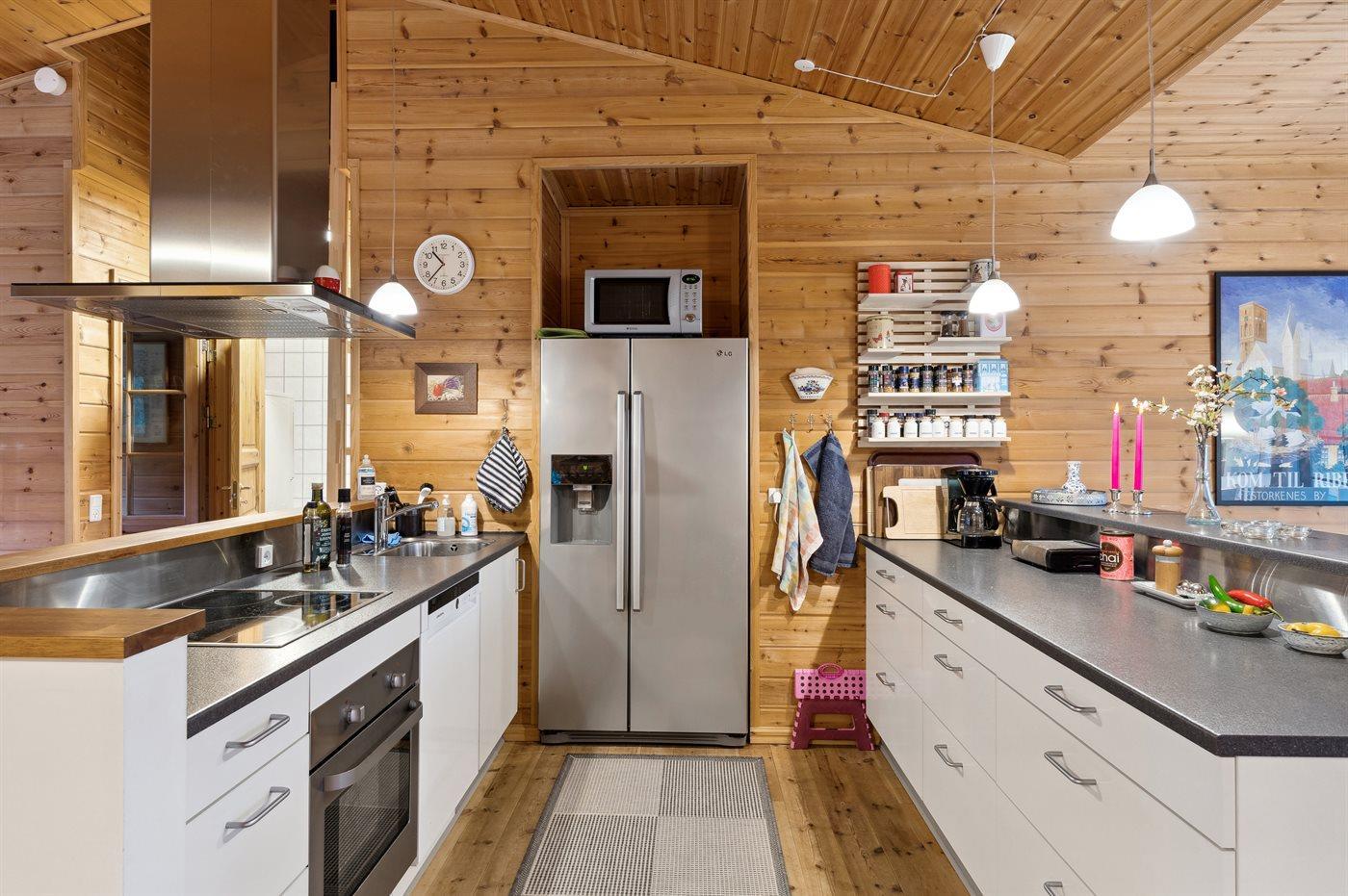 Die Küche ist mit amerikanischem Kühlschrank ausgestattet. Außerdem gibt es 4 Keramik-Kochfelder, Umluftofen, Mikrowelle sowie Geschirrspüler.