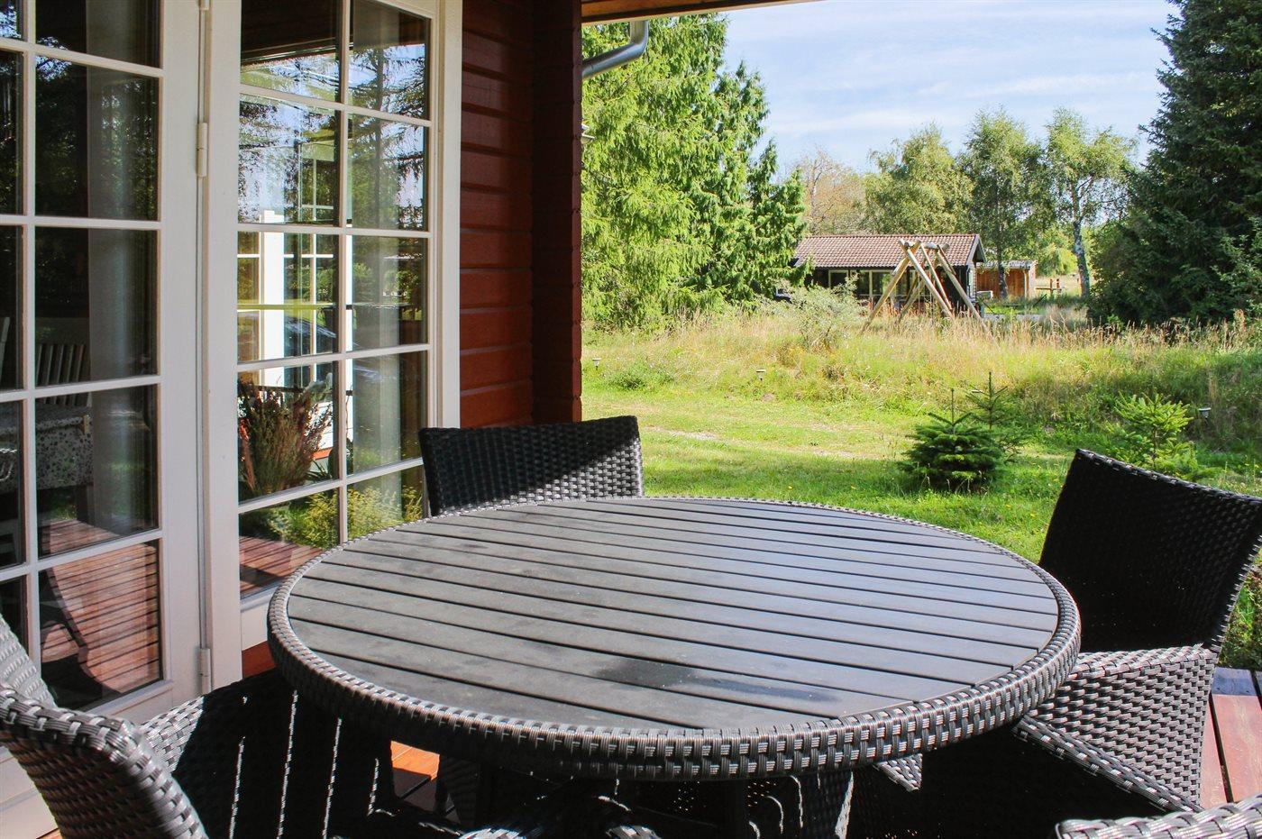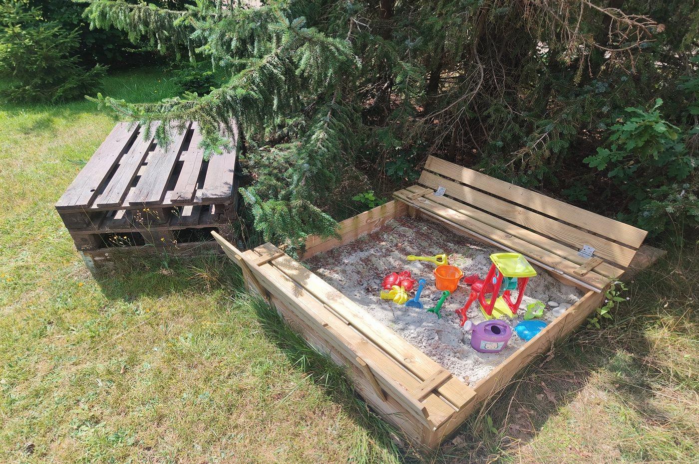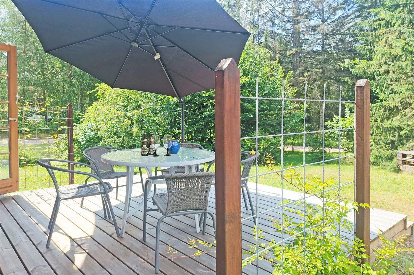 Die Ferienunterkunft liegt auf einem 1246 m² großen Naturgrundstück. Die Entfernung zum Meer beträgt 8000 m. Die nächste Einkaufsmöglichkeit liegt 4000 m entfernt. Es steht ein offenes Terrassenareal zur Verfügung. Außerdem gibt es überdachte Terrasse. Geräteraum. Schaukel. Sandkasten.Lagerfeuerstelle. Es steht ein Grill zur Verfügung. Parkplatz auf dem Grundstück.