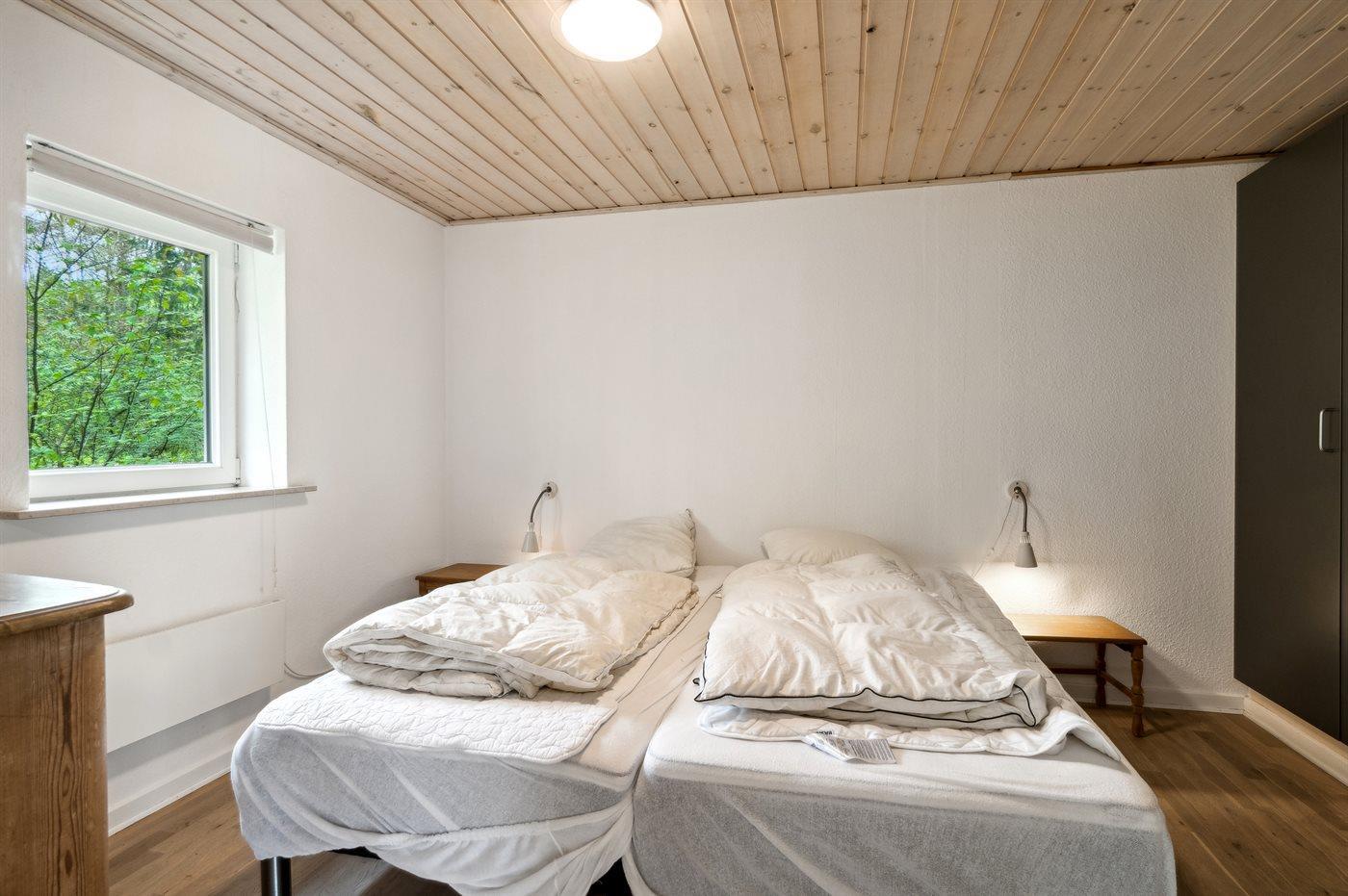 Die Schlafplätze verteilen sich auf 2 Schlafräume. 2 Schlafplätze in einem Doppelbett. 2 Schlafplätze in Einzelbetten.
