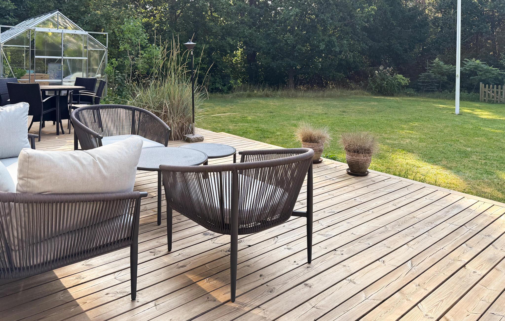 Auch der liebevoll gestaltete Außenbereich lädt die ganze Familie zum Verweilen an der frischen Luft ein. Beobachten Sie Ihre Kinder beim Spielen, während Sie auf bequemen Gartenmöbeln die Seele baumeln lassen, und bereiten Sie köstliche Gerichte auf dem Grill zu.