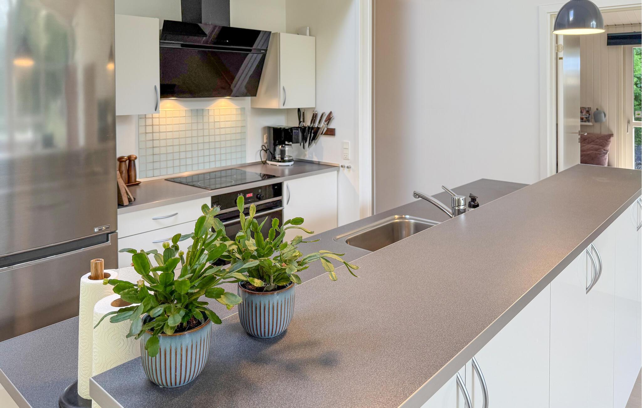Umgeben von einem bezaubernden Grundstück und nahe vieler reizvoller Ausflugsziele können Sie in diesem komfortablen Ferienhaus den Alltag in weite Ferne rücken lassen. Große Fensterfronten geben den Blick ins Grüne frei und versorgen den geschmackvoll eingerichteten Wohnbereich mit viel natürlichem Tageslicht. Genießen Sie gesellige Mahlzeiten am behaglich beleuchteten Esstisch, veranstalten Sie gemütliche Spieleabende oder lauschen Sie bei entspannten Lesestunden auf dem Sofa dem leisen Knistern des Kaminofens.