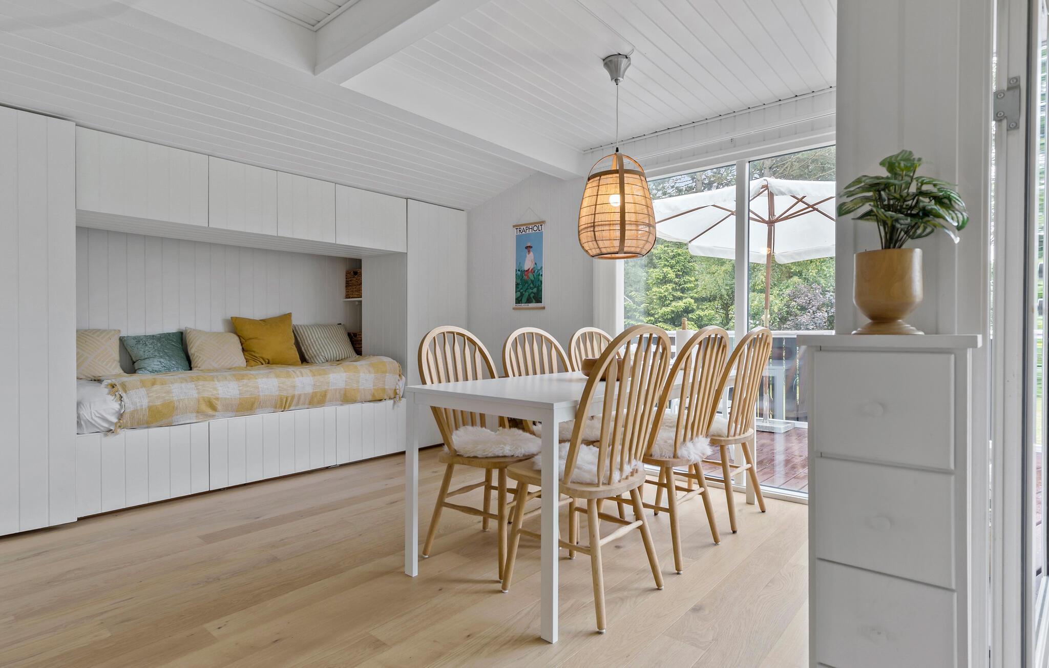 Tauchen Sie ein in die hyggelige Atmosphäre Ihres Ferienhauses, das sowohl Erholung als auch spannende Ausflugsmöglichkeiten bietet. Im Inneren erwartet Sie ein einladendes Ambiente, freundlich mit hellem Holz gestaltet. Die offene Wohnküche ist der ideale Ort für gemeinsame Mahlzeiten und gesellige Kochabende. Genießen Sie Ihr Frühstück am stilvollen Esstisch oder draußen auf der Terrasse und starten Sie entspannt in den Tag. Nach der ersten Tasse Kaffee können Sie es sich auf dem komfortablen Sofa bequem machen. Der Esstisch eignet sich nicht nur für Mahlzeiten, sondern auch für Gesellschaftsspiele und kreative Aktivitäten. Lassen Sie Ihrer Kreativität freien Lauf und genießen Sie die gemeinsame Zeit mit der Familie.