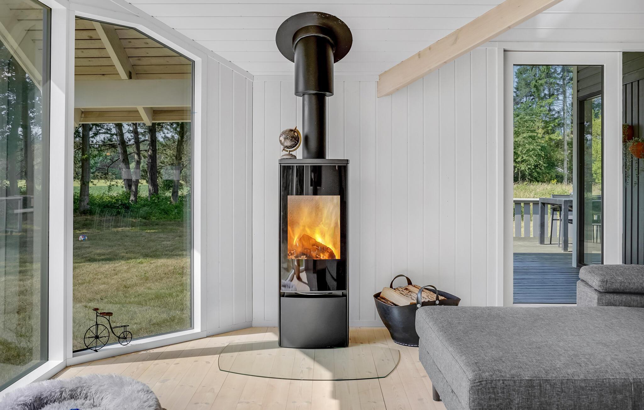 Modernes Ferienhaus mit Kamin, Terrasse und herrlichem Blick ins Grüne bei Ebeltoft.