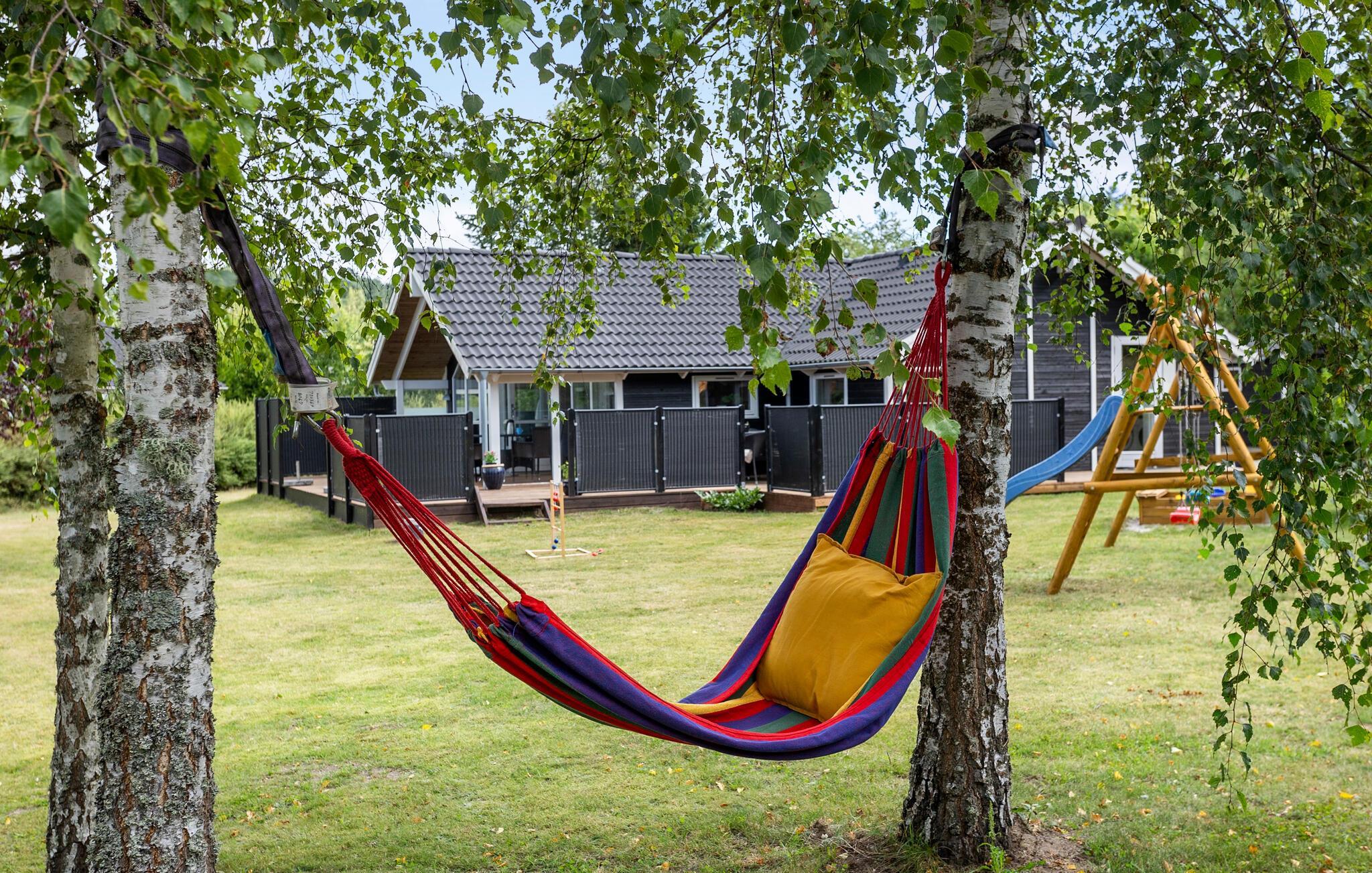 Der Außenbereich lädt mit einer schönen Terrasse, Sitzgelegenheiten und einem großen Esstisch zu entspannten Stunden an der frischen Luft ein. Wer noch mehr Entspannung wünscht, findet im Garten eine Hängematte