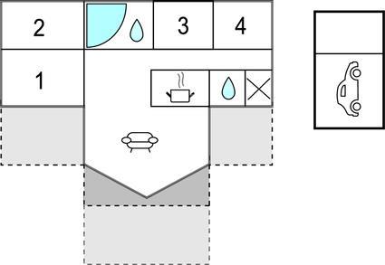 Badezimmer (nr. 1) - WC. Warmes und kaltes Wasser. Dusche