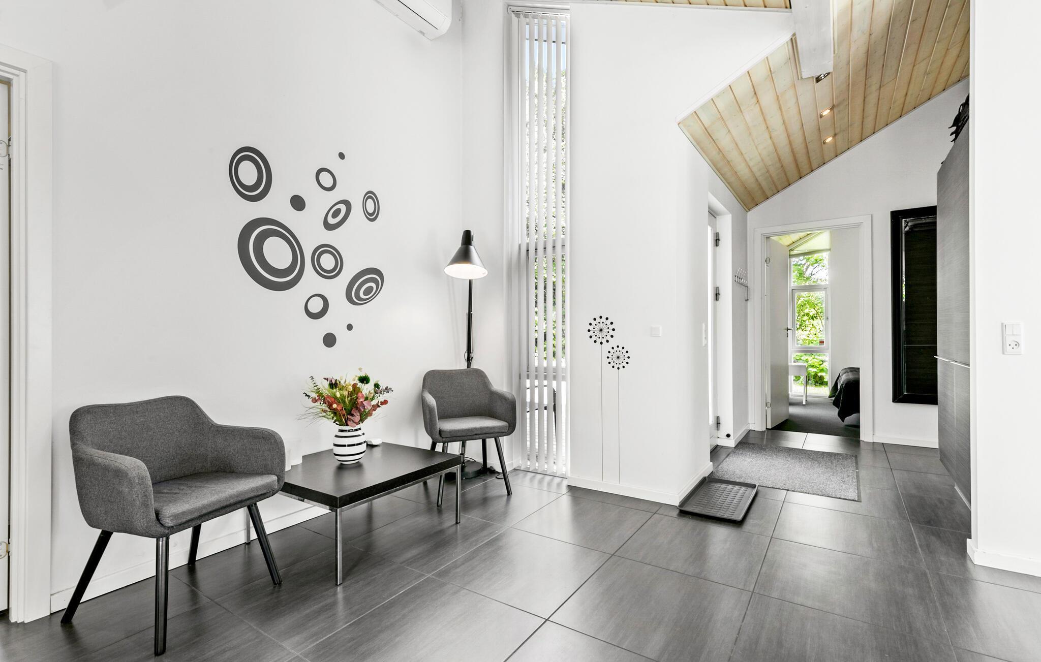 Tauchen Sie ein in das gemütliche und stilvolle Ambiente Ihres Ferienhauses in Fuglslev nahe Ebeltoft, das Ihnen sowohl Entspannung als auch zahlreiche Möglichkeiten für spannende Ausflüge bietet. Im Inneren des Hauses erwartet Sie eine behagliche Atmosphäre, geprägt von einer stilvollen und hellen Einrichtung. Die offene Küche ist ideal, um morgens ein gemeinsames Frühstück und abends zusammen leckere Mahlzeiten zuzubereiten. Die komfortable Sofalandschaft lädt zum Lesen eines guten Buches am Kaminfeuer oder zu einem spannenden Film ein.