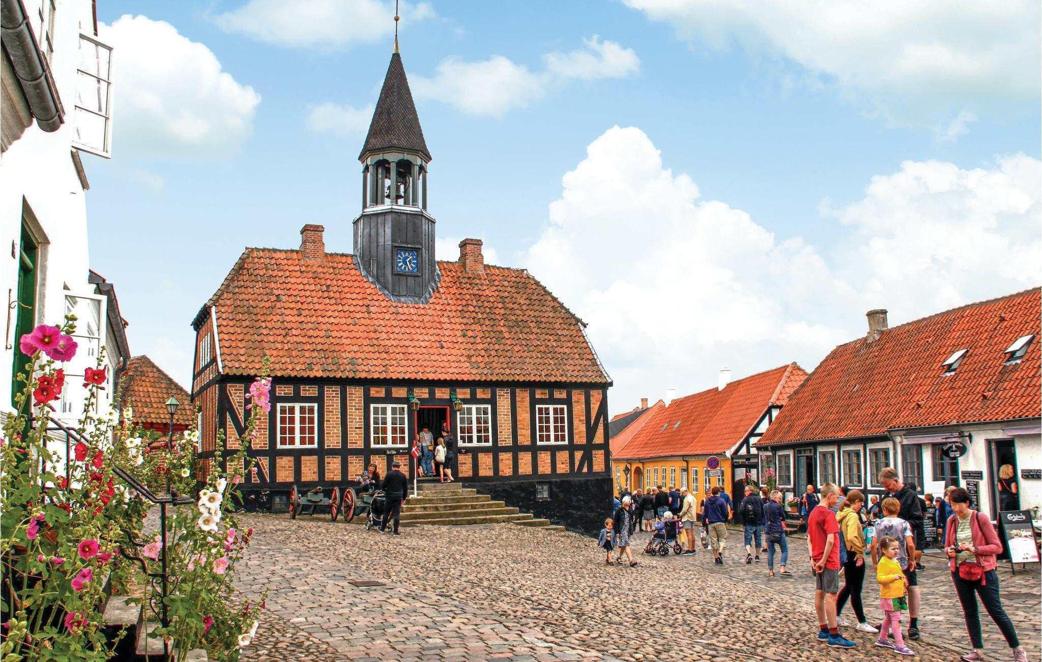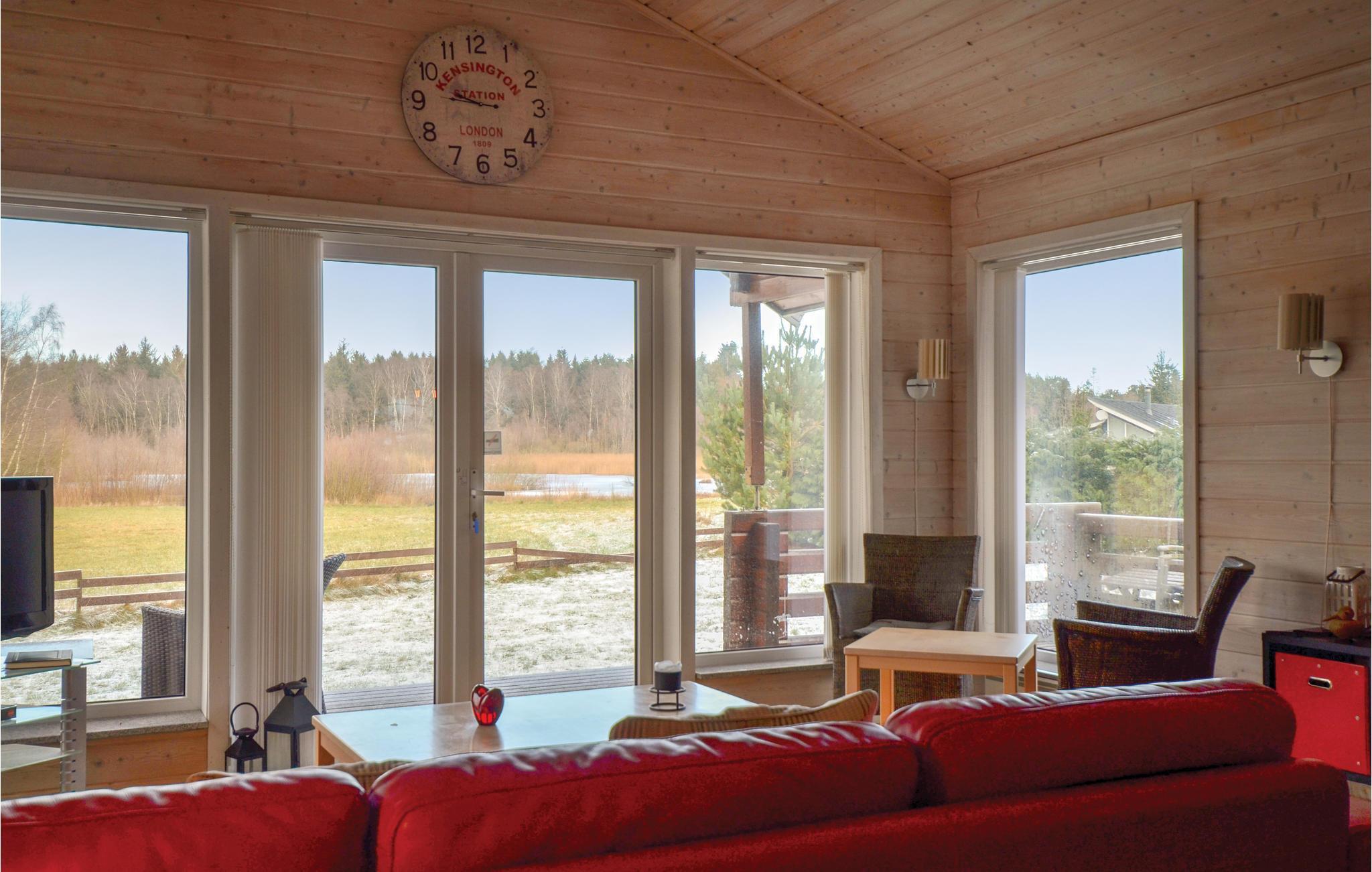 Ein finnisches Haus zum Genießen. Hier erwarten Sie Spitzenqualität und eine geschmackvolle Einrichtung. Alle Zimmer haben direkten Zugang zur Terrasse. Von der überdachten Terrasse haben Sie eine schöne Aussicht auf die Landschaft und einen kleinen See. Hier haben Sie viel Gelegenheit die Stille der Natur beim Spazieren zu genießen. Da Ebeltoft und der Badestrand nur 10 Minuten entfernt liegen, haben Sie schnell Kontakt zum pulsierenden Ferienleben.