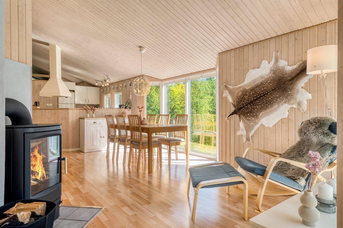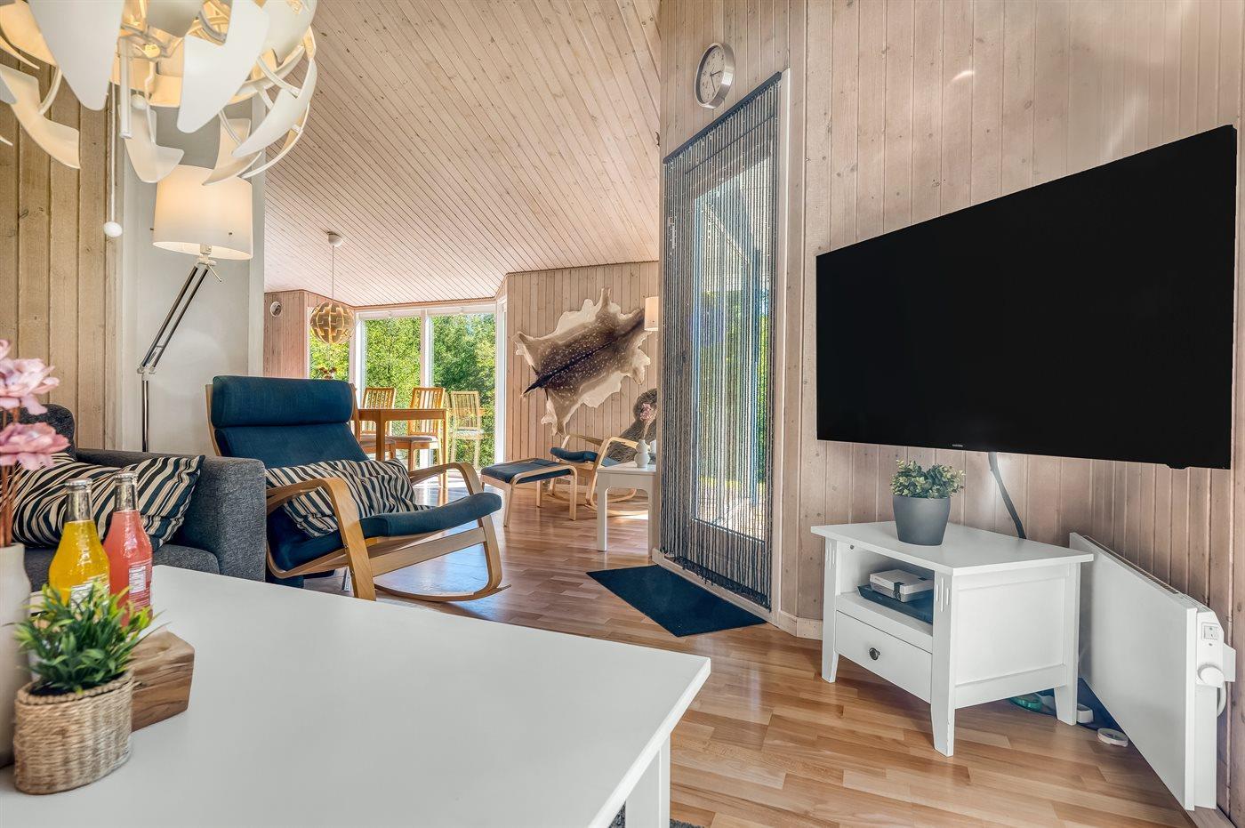Die Ferienunterkunft liegt auf einem 2912 m² großen Gründstück, das in einem Wald/Plantage liegt. Die Entfernung zum Fjord beträgt 150 m. Es gibt einen Badesteg in der Nähe. Die nächste Einkaufsmöglichkeit liegt 5000 m entfernt. Es steht ein offenes Terrassenareal zur Verfügung. Außerdem gibt es überdachte Terrasse. Schaukel. Es steht ein Grill zur Verfügung. Parkplatz auf dem Grundstück.