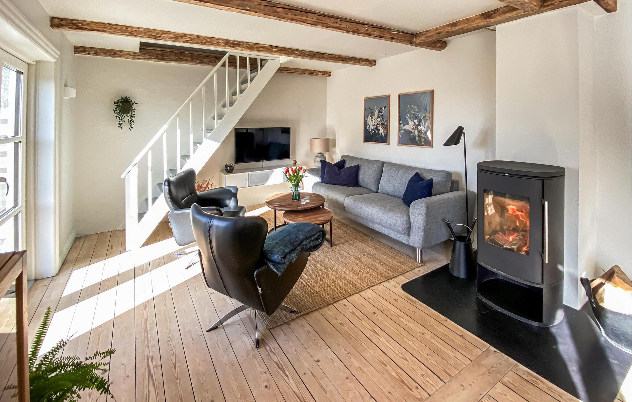 Mit der kleinen Fähre vom Hafen in Branden erreichen Sie nach nur wenigen Minuten Ihre Urlaubsinsel Fur, mitten im schönen Limfjord gelegen. Hier erwartet Sie ein idyllischer Ferienhausurlaub mit der ganzen Familie. In diesem stilvoll eingerichten Ferienhaus, das Tradition und Moderne geschmackvoll vereint, können Sie Ihre Tage gemächlich angehen. Die urigen Holzbalken und der warme Holzboden schaffen eine Atmosphäre, die dänische Hygge ausstrahlen. Lassen Sie sich von diesem Lebensgefühl anstecken und genießen Sie zunächst ein ausgiebieges Frühstück, bevor Sie es sich im Wohnbereich gemütlich machen. Der Kaminofen trägt an kühleren Tagen zur Wohlfühlstimmung bei. Dies ist der ideale Ort, um mit der Familie Spiele zu spielen, Bücher zu lesen oder einfach nur die Seele baumeln zu lassen.