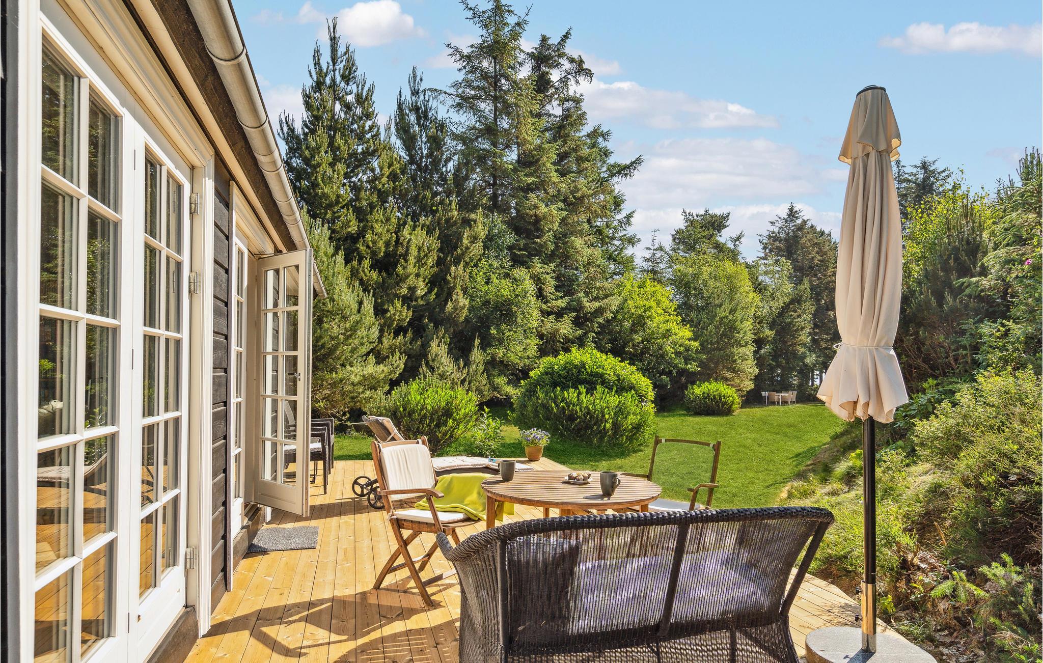 Auf der charmanten Insel Fur begrüßt Sie nur wenige Schritte vom Limfjord entfernt dieses wunderbare Ferienhaus. Es liegt auf einem riesigen, bewaldeten Naturgrundstück und macht einen stilvollen Eindruck. Das hochwertige und liebevoll dekorierte Interieur bietet mehrere, gemütliche Ecken, die zu ruhigen Lesestunden, geselligen Brettspielabenden und stimmungsvollen Gesprächen vorm Kaminofen einlädt. Bereiten Sie in der tollen Küche Ihre Köstlichkeiten beim Blick ins Grün zu.