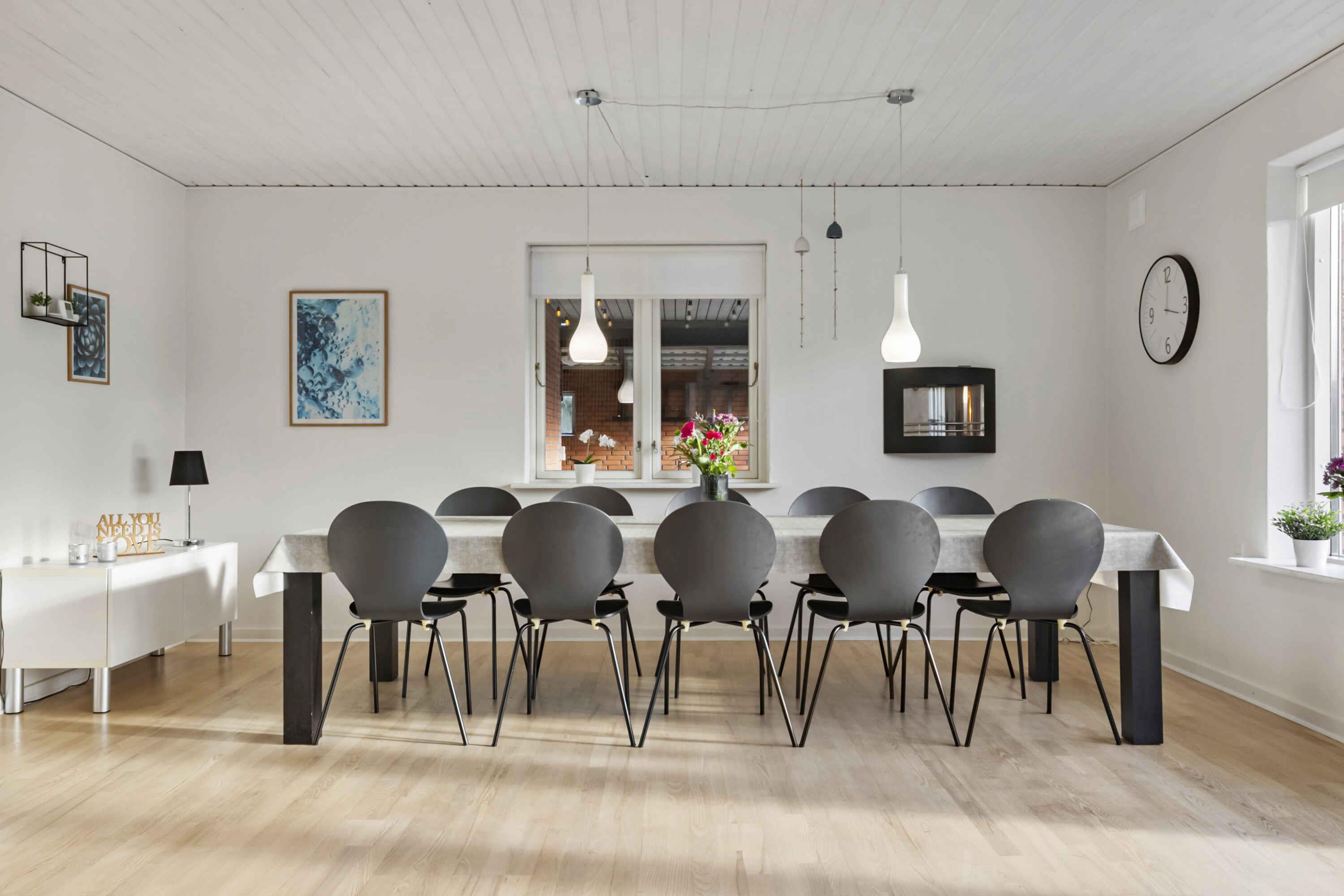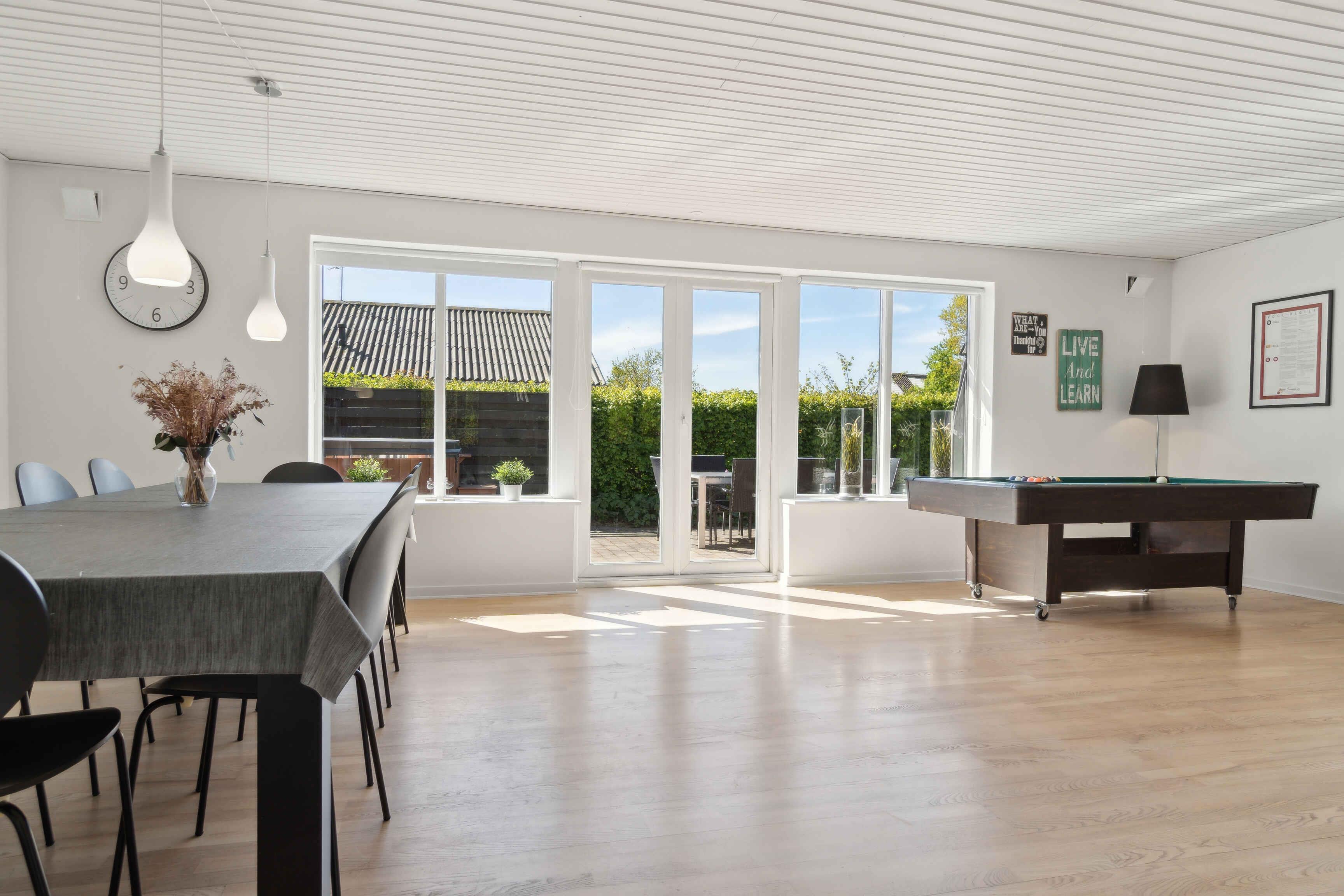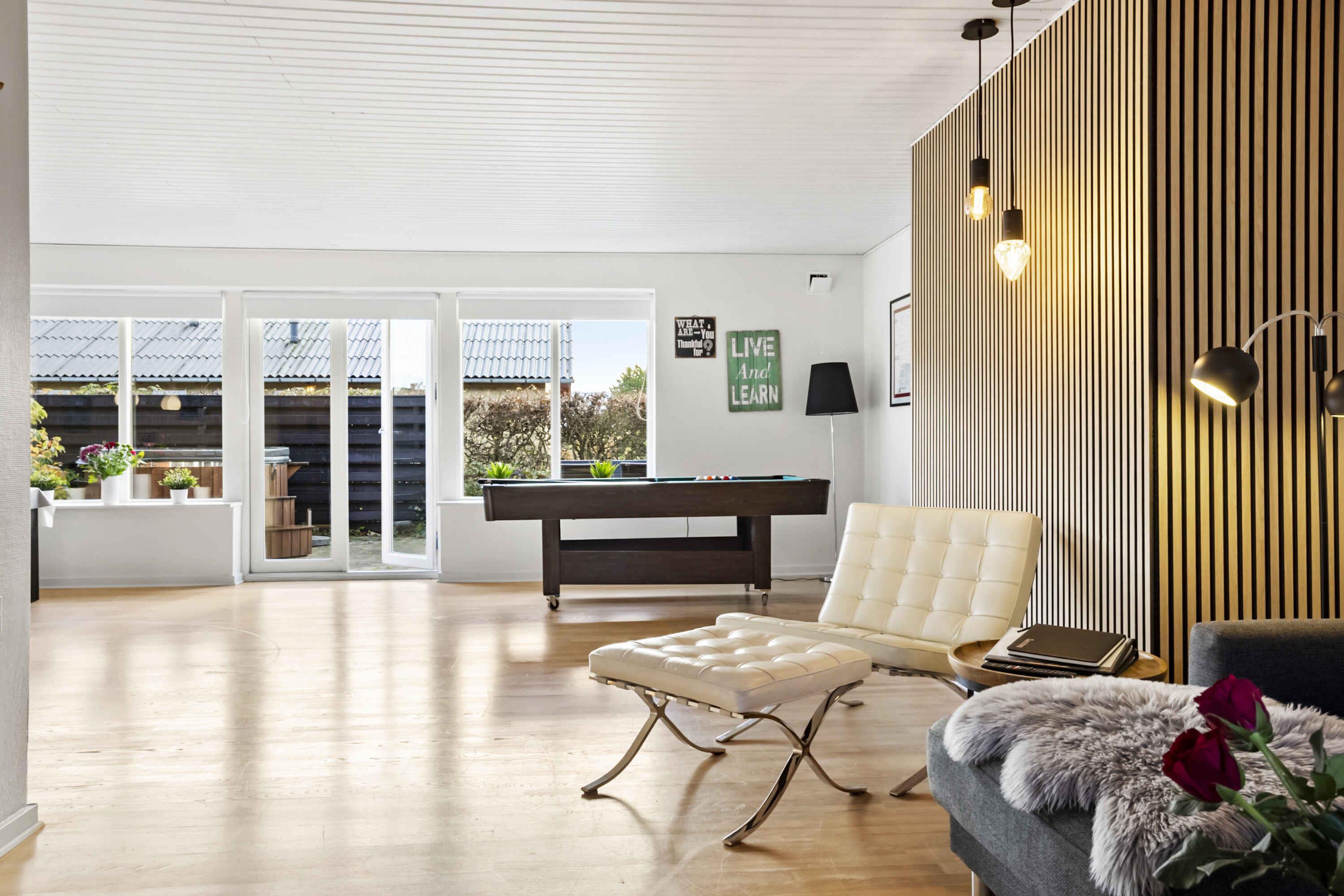 Ein wirklich schönes Ferienhaus, das unter anderem einen elektrisch beheizten Hot Tub für 6 Personen sowie einen Aktivitätsraum mit Billard und Tischfußball bietet. Das gesamte Anwesen liegt nur etwa 150 Meter vom Wasser entfernt auf der malerischen Insel Fur. Das Grundstück der Ferienwohnung umfasst insgesamt 680 m². Der Hintergarten ist mit Rasen angelegt und bietet Ihnen viele Möglichkeiten, den Urlaub in Ruhe zu genießen oder sich aktiv mit Spielen und Ballspielen zu beschäftigen. Rund um das Haus gibt es verschiedene gemütliche Ecken, ideal zum Entspannen mit einem guten Buch, während die Kinder im Garten spielen oder den großen, luxuriösen Hot Tub genießen. Terrasse und Garten sind eingezäunt, sodass kleine Kinder und Haustiere sicher und frei herumlaufen können. Das Haus bietet viele verschiedene Aktivitäten und ist ein Erlebnis für sich. Es gibt stundenlange Unterhaltung für Kinder und Erwachsene. Zu den Aktivitäten gehören Billard, Tischfußball, Darts im Freien, Leitergolf und eine Schaukel mit Rutsche im Garten. Die Ferienwohnung ist hell und einladend. Das Haus ist gut und praktisch eingerichtet mit einer kombinierten Küche/Ess-/Wohnbereich. In Wohnzimmer, Küche, beiden Badezimmern und den Fluren gibt es Fußbodenheizung, die hauptsächlich über Fernwärme betrieben wird, wodurch sich Energie sparen lässt. Das Haus bietet außerdem eine Ladestation für Elektroautos. Die hochwertige Küche verfügt unter anderem über Keramikkochfelder, Dunstabzugshaube, separaten Heißluftofen mit Grill, Mikrowelle, Geschirrspüler, Kaffeemaschine, Kühlschrank und separaten Gefrierschrank mit mindestens 100 Litern Fassungsvermögen. Das Wohnzimmer ist modern möbliert, verfügt über kostenloses Highspeed-Internet (500/500) und einen Smart-TV mit Chromecast, sodass Sie Ihre eigenen TV-Dienste streamen können. Außerdem gibt es einen Bio-Kamin, der an einem kühlen Sommerabend oder einem regnerischen Herbstabend für Wärme sorgt. Helles Badezimmer mit Badewanne, Toilette und Dusche. Gästebad mit Toilette. Darüber hinaus gibt es Waschmaschine und Trockner im Haus. Das Ferienhaus verfügt über vier Schlafzimmer, davon 2 Zimmer mit Doppelbett und Etagenbett sowie 2 Zimmer mit Doppelbetten. Das Haus eignet sich für 8 Erwachsene und 2 Kinder. Das Haus bietet eine große und schöne Terrasse, sowohl offen als auch überdacht. Es gibt Gartenmöbel, Liegestühle, einen Sandkasten mit Spielzeug sowie einen Holzkohlegrill. Hier können Sie Ihr Abendessen oder ein Glas Wein genießen, während die Sonne über der Umgebung untergeht. Der 6-Personen-Hot Tub befindet sich ebenfalls auf der Terrasse. Die Ferienwohnung liegt äußerst günstig, nur ca. 150 Meter vom Wasser, Strand mit Badesteg und Furs Hafenbereich mit Yachthafen, Fähre, Geschäften und Restaurants entfernt. Wer mit den Aktivitäten im Haus noch nicht genug hat, findet etwa 250 Meter vom Haus entfernt eine große Grünfläche mit Spielplatz, Tisch-Bank-Kombination, Multisportfeld und Minigolf (Minigolf-Ausrüstung kann vor Ort gemietet werden). Es ist erlaubt, 2 Haustiere mitzubringen. DER PREIS INKLUDIERT ENDREINIGUNG. Das Ferienhaus befindet sich auf der malerischen Insel Fur im Limfjord. Die Fähre zwischen Fur und Branden verkehrt rund um die Uhr – insgesamt 72 Mal täglich. Die Überfahrt dauert ca. 4 Minuten, und eine vorherige Buchung von Tickets ist nicht erforderlich. Fur ist unter anderem bekannt für Fossilien, steile Klippen und wunderschöne Ausblicke über Land und Fjord. Eine Landschaft, geformt von Kieselalgen, vulkanischer Asche, Eis, Wasser und Menschen. Fur ist auch für sein Bier bekannt, da das Grundwasser auf Fur einzigartig für die Bierherstellung ist.