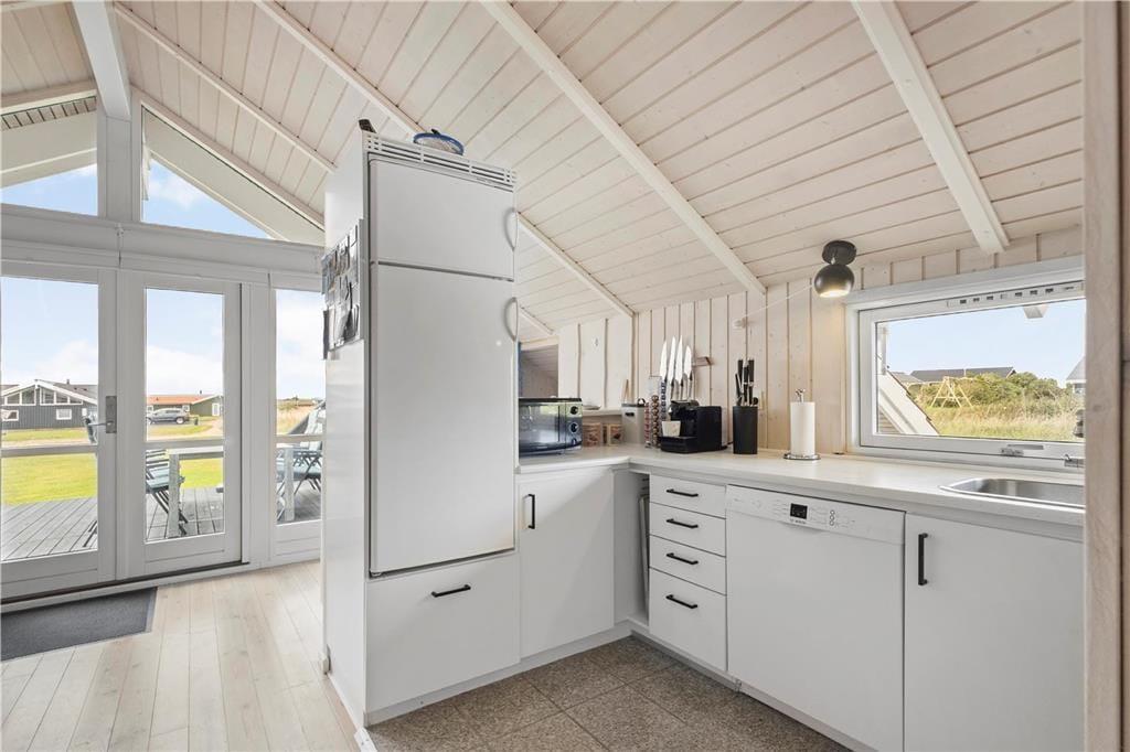 Es gibt viel Licht und Luft in diesem Ferienhaus, das wunderschön in einem ruhigen Ferienhausgebiet inmitten außergewöhnlicher Natur liegt. Vom Haus sind es nur 400 Meter zum Strand, und Sie haben fußläufig Zugang zu den vielen Angeboten im gemütlichen Ferienort Løkken.