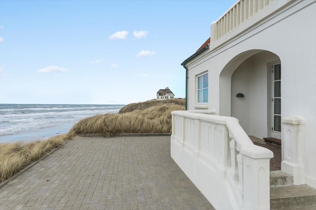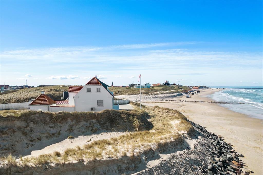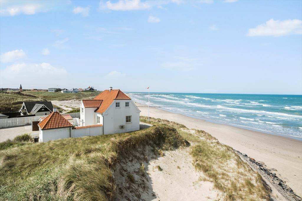 Strandbohus, wie dieses stattliche Ferienhaus aus dem Jahr 1917 heißt, hat eine exklusive Lage in Furreby, direkt an der Nordsee. Ja, es hat wahrscheinlich eine der besten Adressen an der Westküste, sodass ihr euch auf einen unvergesslichen Urlaub mit freiem Blick aufs Meer und nur wenige Schritte zum Strand freuen könnt – und das alles auf einem privaten, küstengesicherten Grundstück.