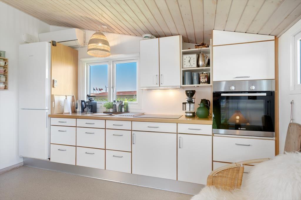 Dank seines hellen, nordischen Einrichtungsstils verwöhnt dich dein Ferienhaus mit einer warmen, einladenden Wohnatmosphäre. Bei diesem Mietobjekt steht definitiv das Beisammensein mit den Lieben im Mittelpunkt. In klassischer Ferienhausmanier fügt sich die Küche offen in den stimmungsvollen Wohnraum ein. Aufgrund der offenen Wohnlösung genießt du selbst während der Zubereitung der Mahlzeiten die Nähe deiner Lieben, die beispielsweise am Esstisch Gesellschaftsspiele spielen. Nach einem gemeinsamen Abendessen macht ihr es euch in der Polstersitzgruppe vor dem romantisch knisternden Kaminofen gemütlich. Tagsüber genießt du dank der großen Fensterpartien den Ausblick auf die hübsche Umgebung und gelangst vom Wohnraum aus direkt auf die Terrasse. Mit zwei ansprechenden Schlafräumen und einem Badezimmer beherbergt dein Haus bis zu fünf Personen.