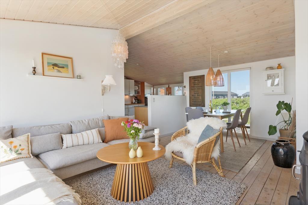 Freu dich auf entspannte Urlaubstage in diesem hellen, gut eingerichteten Ferienhaus, das sich auf einem großen, sonnigen Grundstück mit schönen Terrassen befindet! Du wohnst nah an den rauschenden Nordseewellen und erreichst nach kurzer Fahrt den stimmungsvollen und beliebten Badeort Løkken.