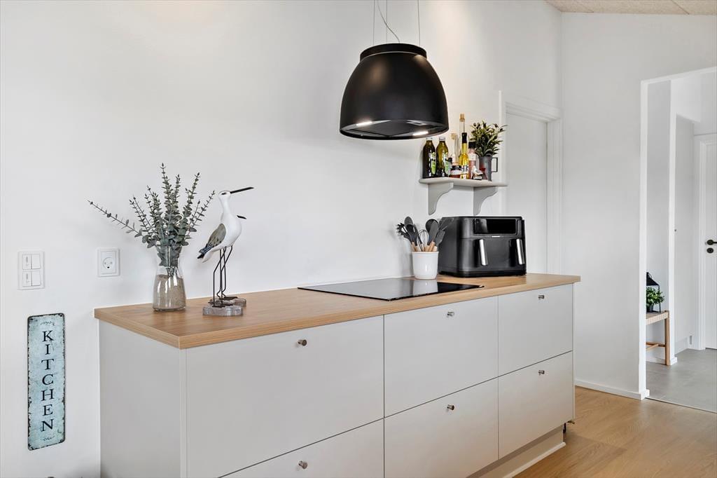 Furreby ist bekannt für seine ruhige Atmosphäre und die Nähe zur Natur – und vom Ferienhaus aus sind es nur wenige Minuten zu Fuß bis zum Strand, wo die charakteristischen Wellen der Nordsee locken. Hier kannst du baden, spazieren gehen, schöne Steine sammeln oder einfach im Sand sitzen und den Blick über das unendliche Meer schweifen lassen. Wenn dir der Sinn nach etwas mehr Trubel steht, bist du in wenigen Minuten in Løkken, wo Cafés, Restaurants, Galerien und Geschäfte mit lokalen Spezialitäten und gemütlicher Stimmung verführen. Du kannst auch einen Ausflug zum Rubjerg Knude Fyr machen, kleine Kunstwerkstätten in Lønstrup besuchen oder mit den Kindern einen unterhaltsamen Tag im Family Farm Fun Park verbringen. Von hier aus hast du alles in Reichweite – von Ruhe und Meeresluft bis hin zu Stadtleben und Familienaktivitäten.