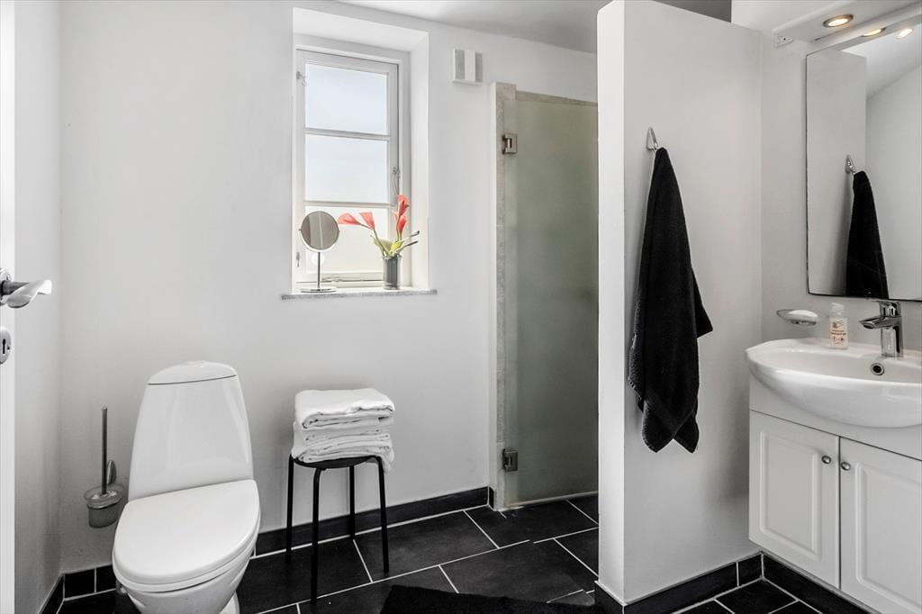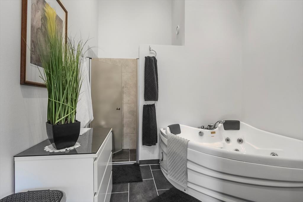 Es gibt zwei Badezimmer, eines mit WC und Dusche, das andere mit WC, Dusche und Innen-Whirlpool – beide Badezimmer verfügen über eine komfortable Fußbodenheizung.