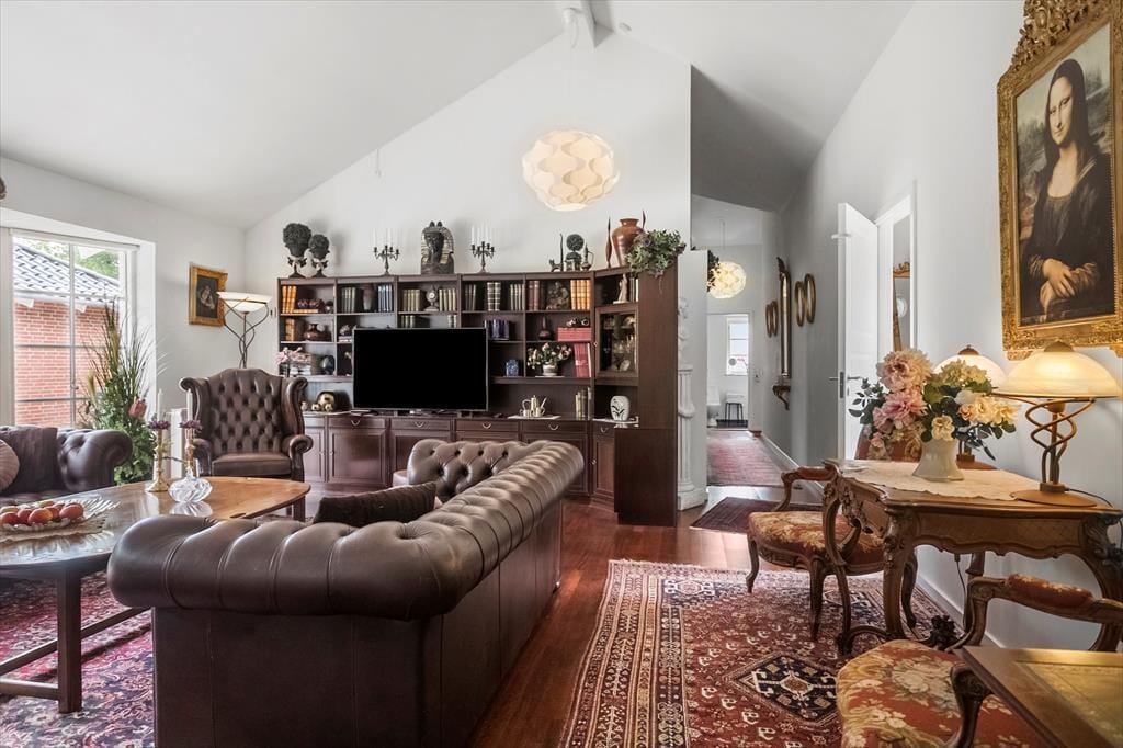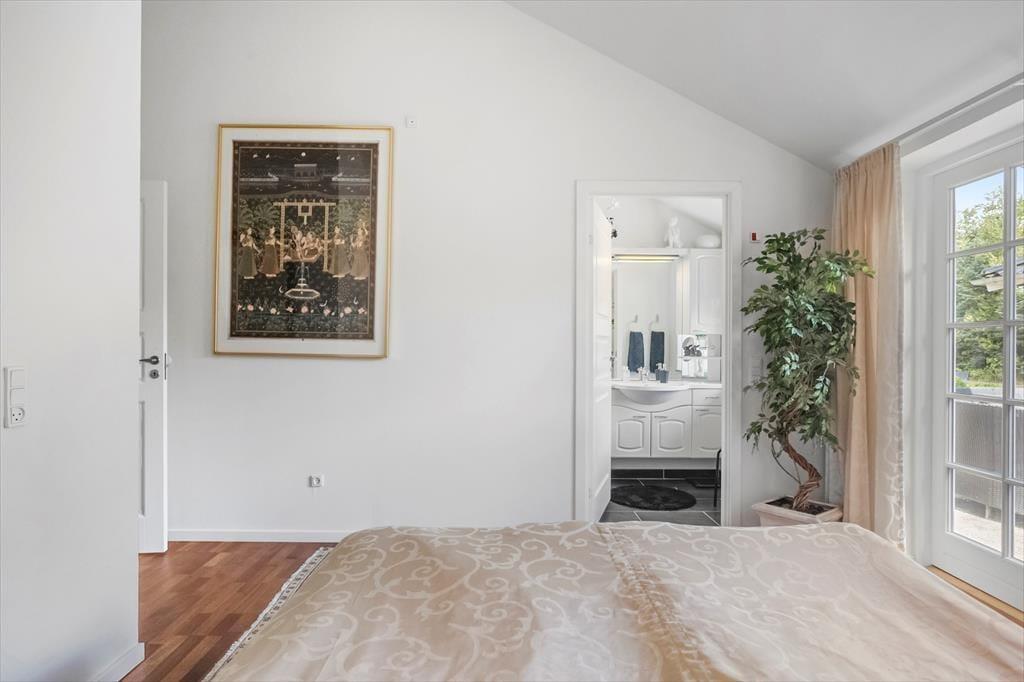 Das Herzstück des Hauses ist die offene Wohnküche mit Essbereich und direktem Zugang zu einer schönen Terrasse. Von hier aus gelangt man in das helle und einladende Wohnzimmer mit Dachschräge und viel Tageslicht.